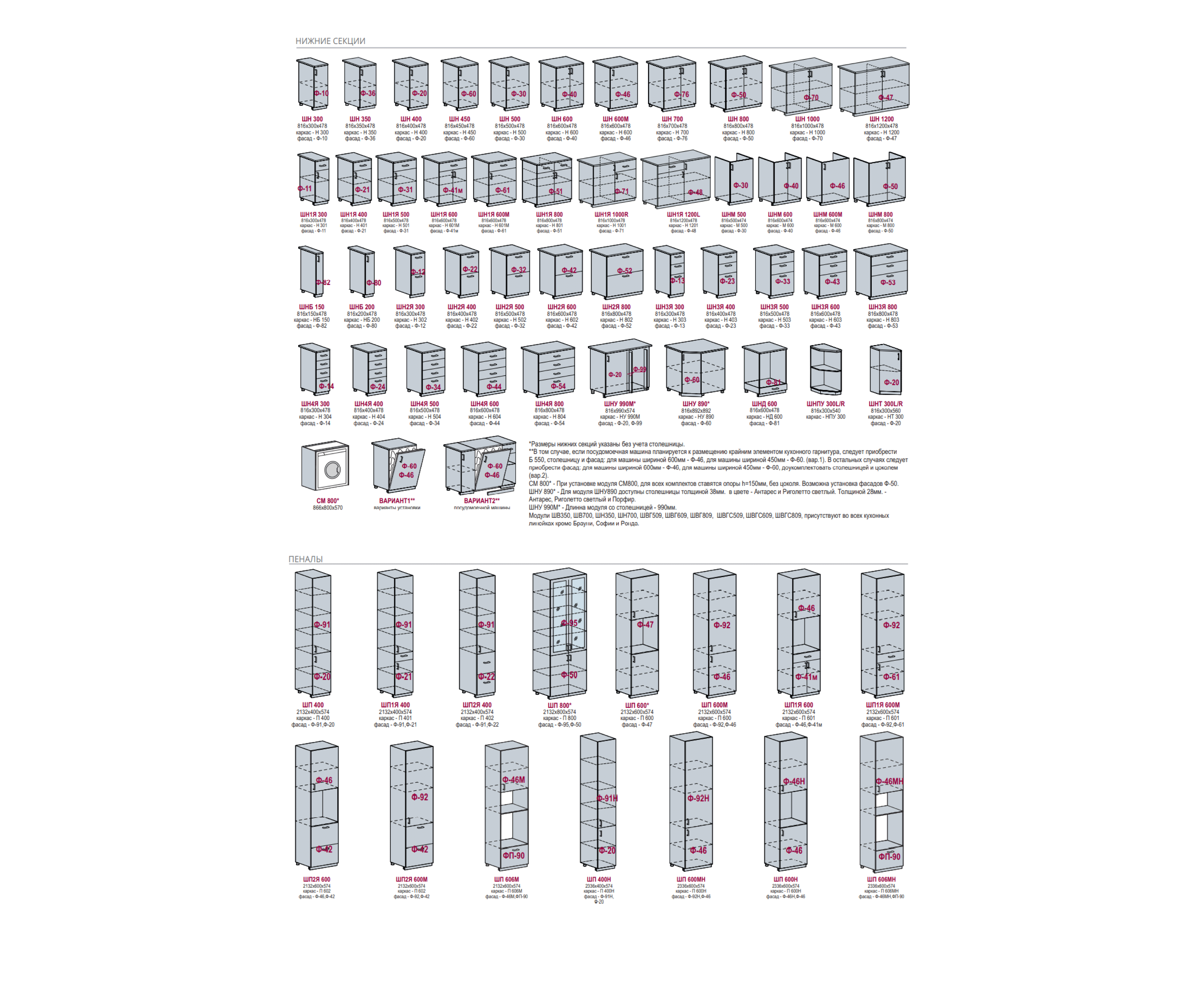 • Глубина нижних шкафов (по столешнице) 600 мм