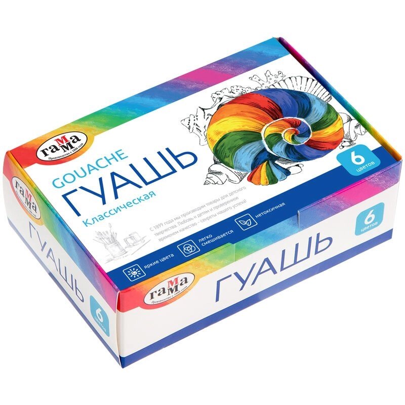 Гуашь "Классическая", 6 цветов, 20 мл, ассорти