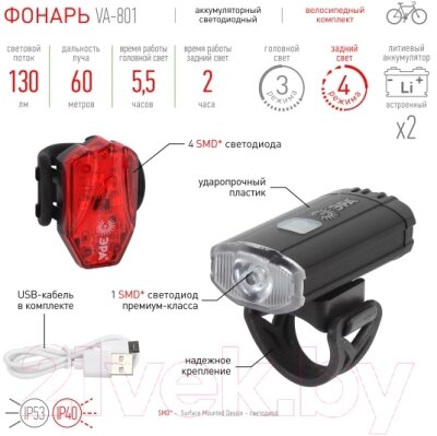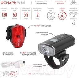 Фонарь для велосипеда ЭРА Вело 2 в 1 VA-801 / Б0039624