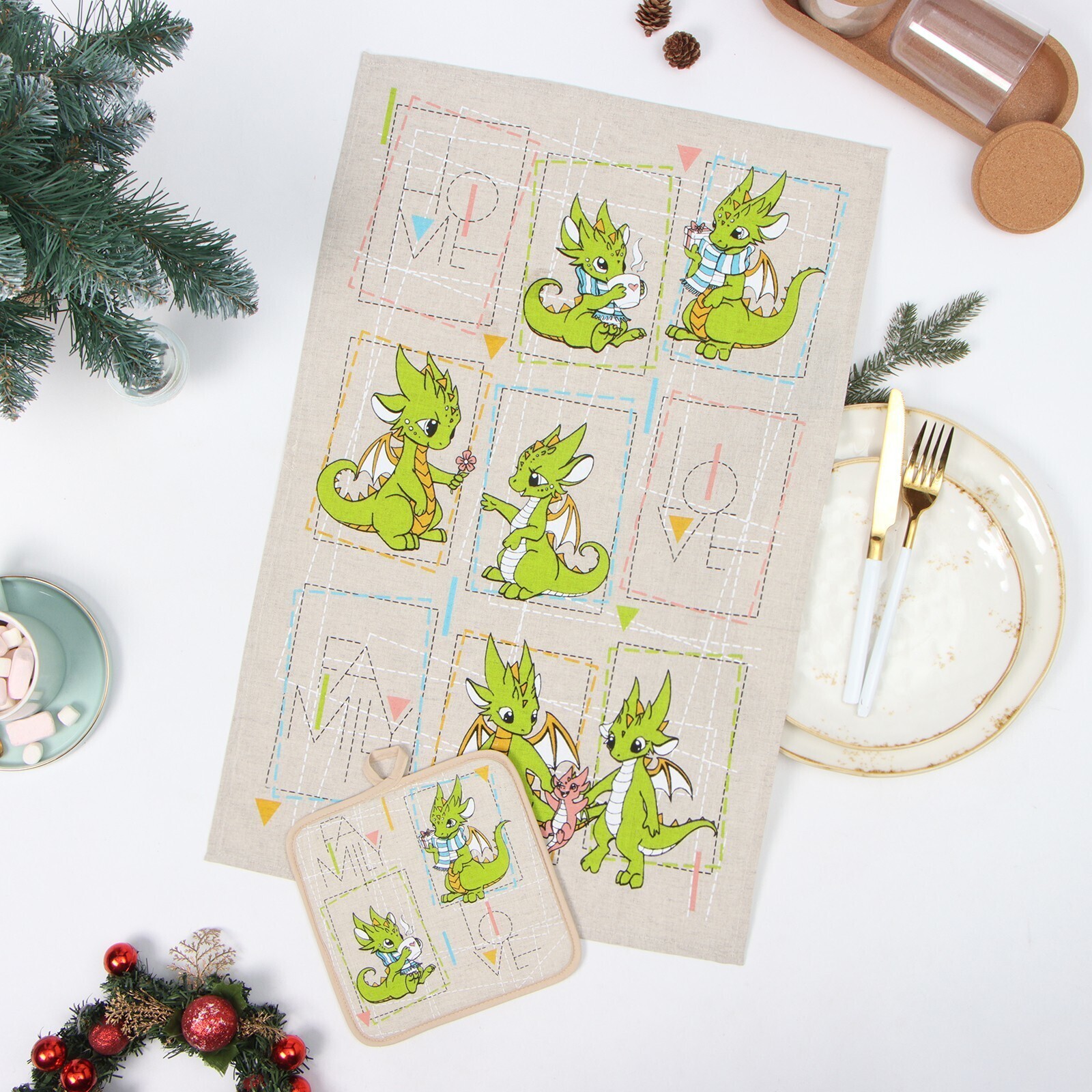 Кухонный набор НК-71-39 Семья (полотенце 39х60+прихватка 18х18), лен50%,хл50%, 160г/м