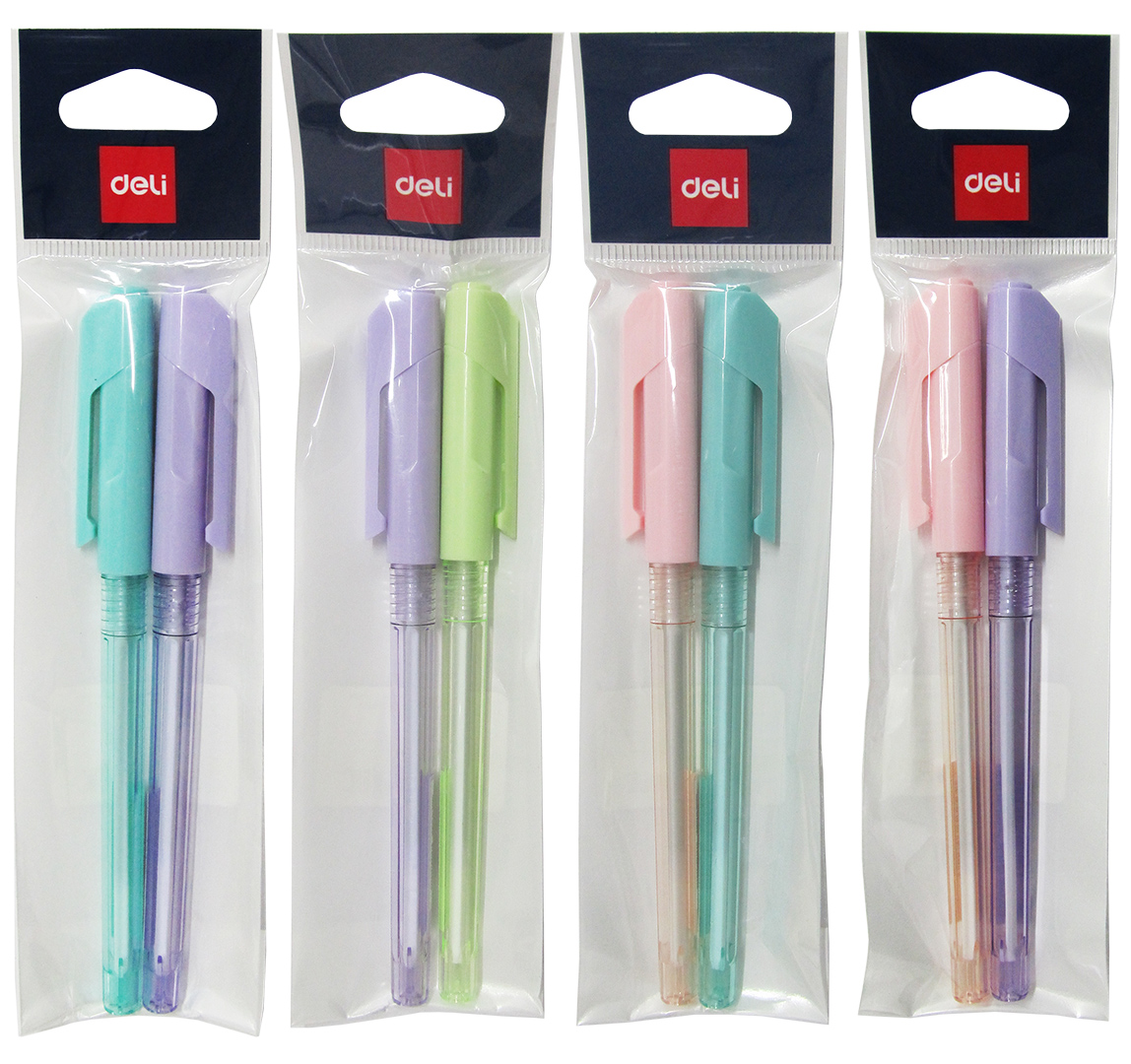 Набор ручек шариковых Deli ARROW, 2 шт в блистере, в прозрачном пластиковом корпусе, с чернилами на масляной основе для мягкого, скользящего письма, и толщиной пишущего узла 0,7 мм.Подходит стержень: шариковый 128 мм, синий, SUPER GRIP, Flair.