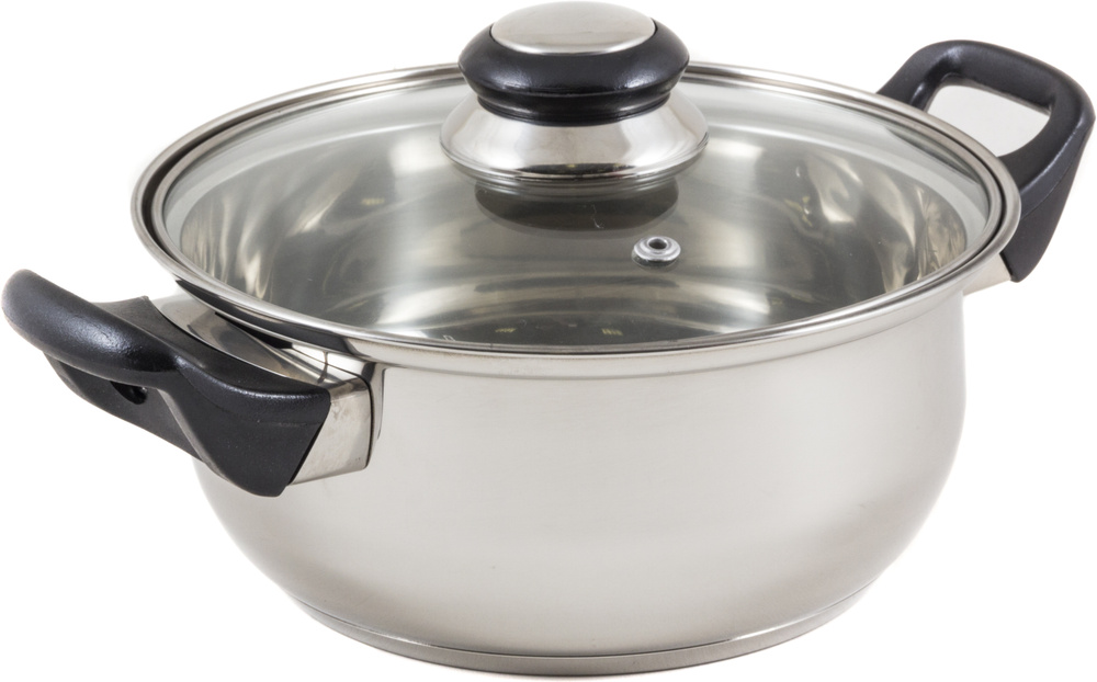Кастрюля из нерж. стали с крышкой (стекло, бакелит) 1,4 л, арт. BAK-01