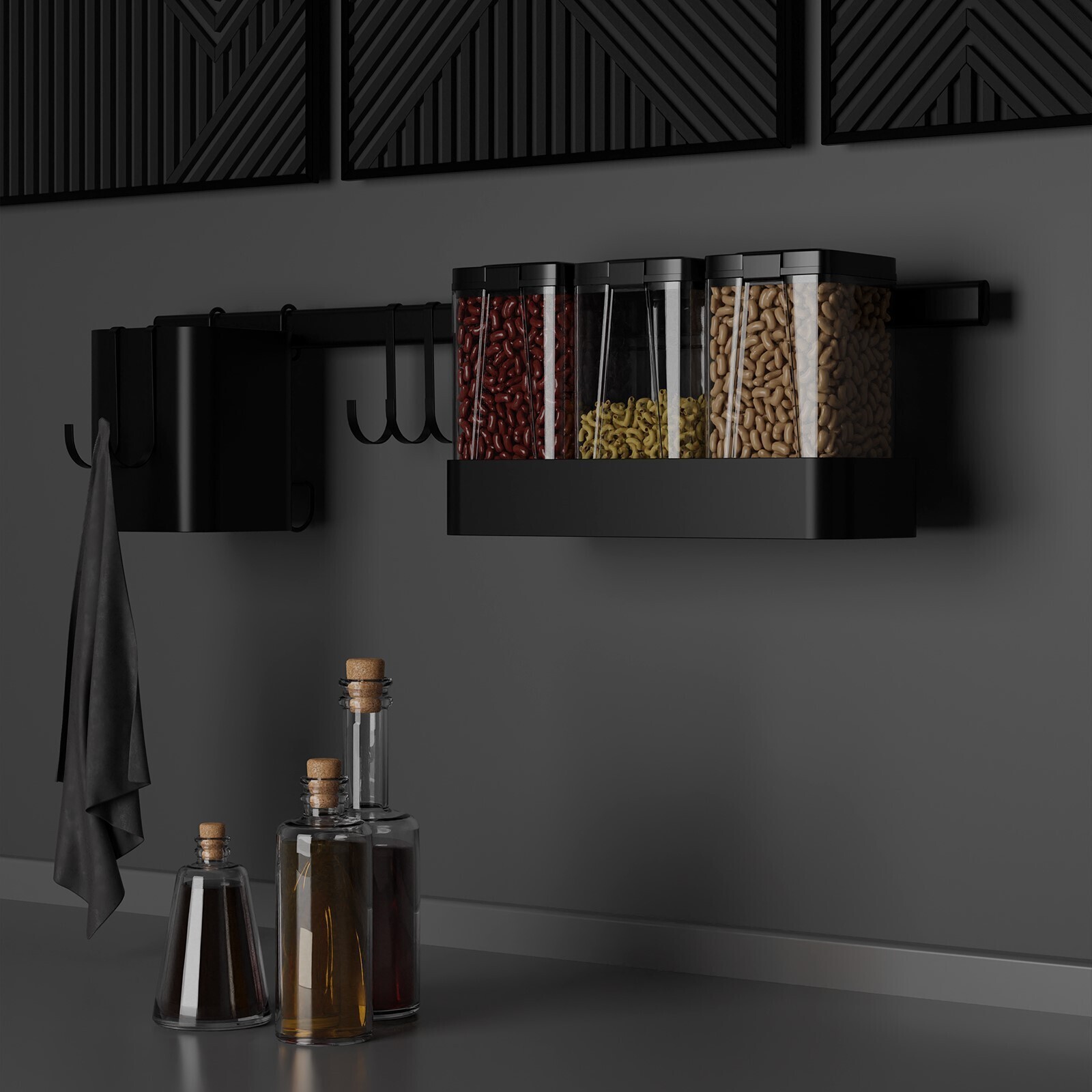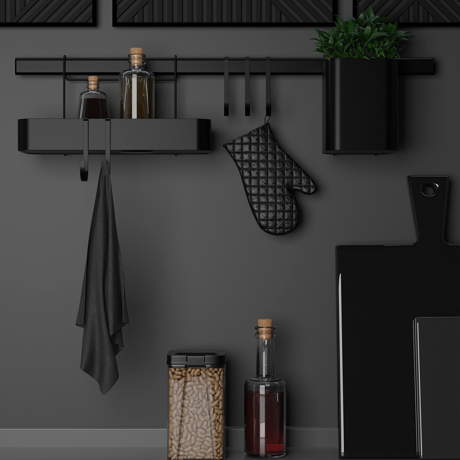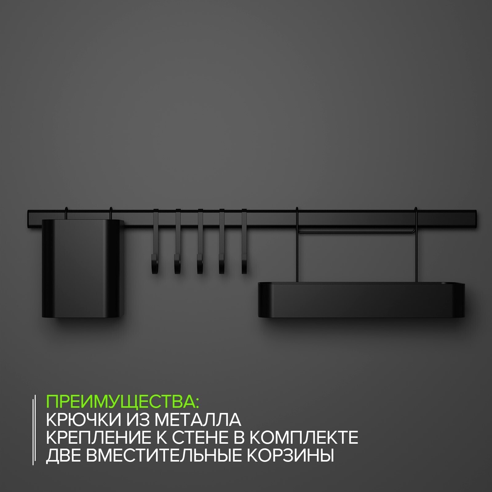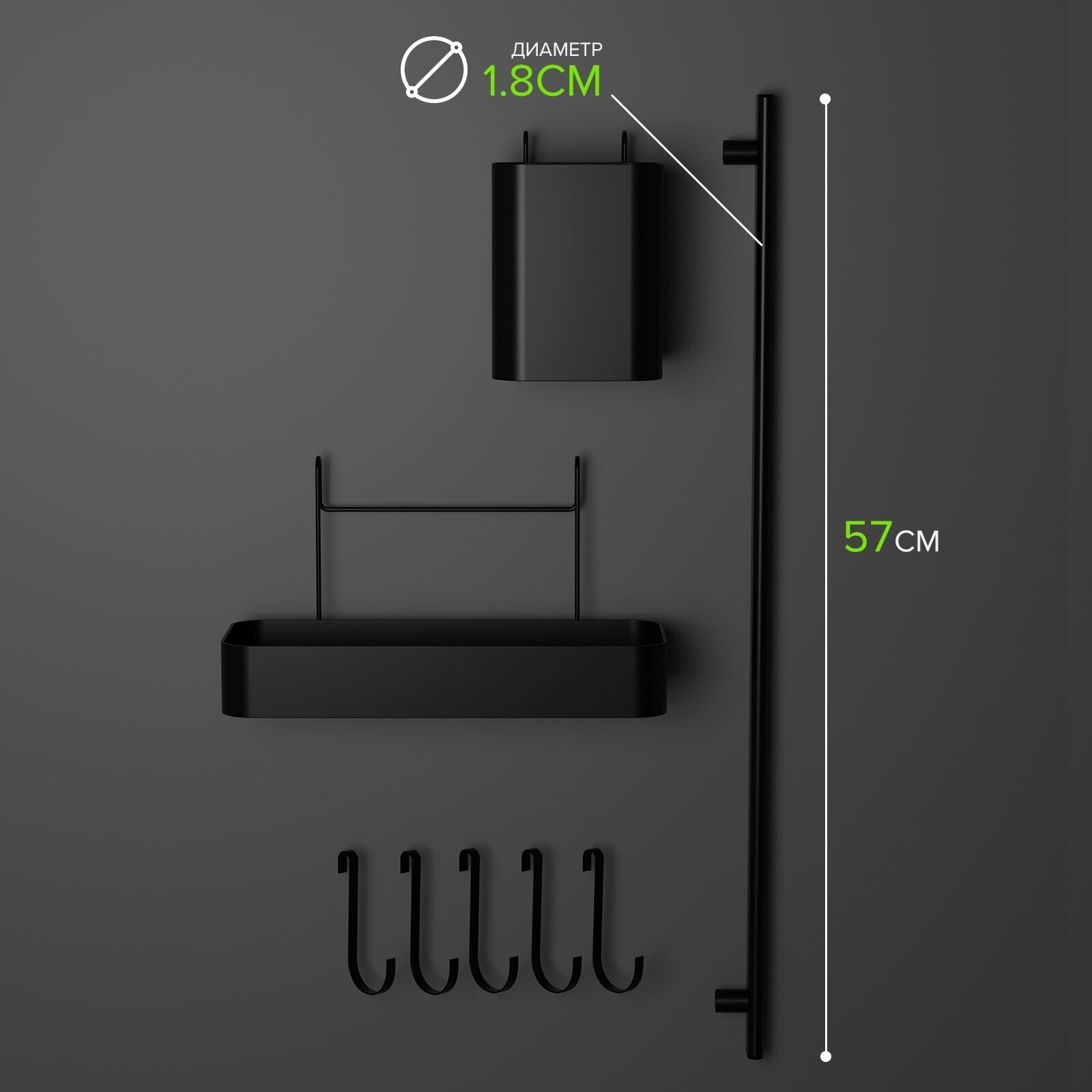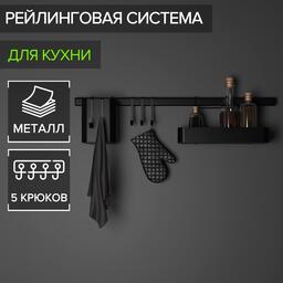 Рейлинговая система для кухни на 8 предметов Доляна, 60,5 см, цвет чёрный