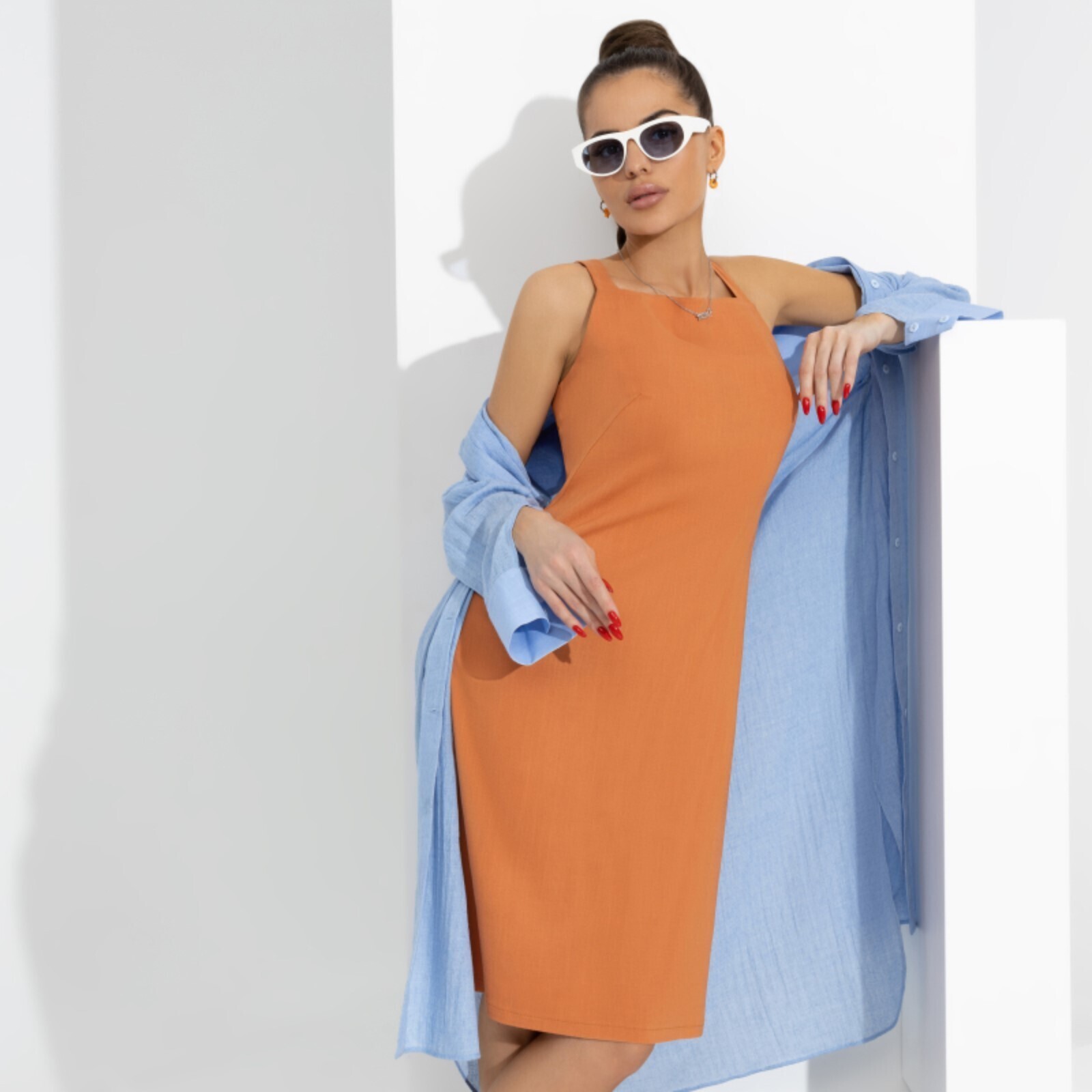Длина изделия: — 42 размер — 98 см; — 44 размер — 98,5 см; — 46 размер — 99 см; — 48 размер — 99,5 см; — 50 размер — 100 см; — 52 размер — 100,5 см.