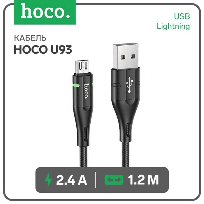 Кабель Hoco U93, USB - Lightning, 2.4 А, 1.2 м, индикатор, черный