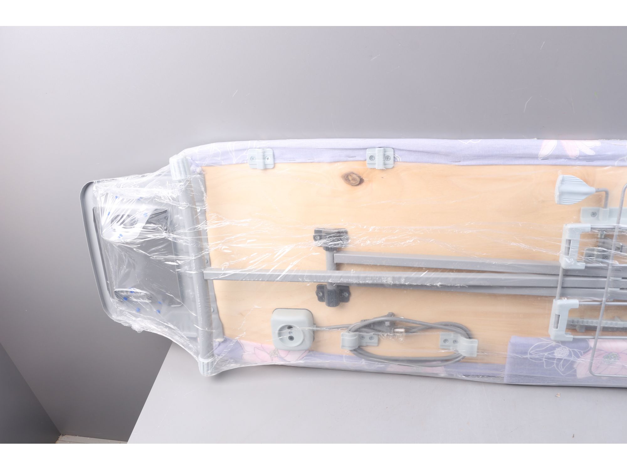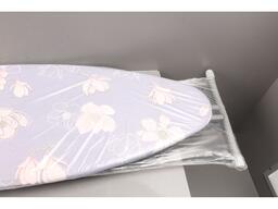 Четырехопорные металлические ножки с пластмассовыми наконечниками сохраняют надежную устойчивость доски и не царапают поверхность пола.Конструкция имеет плавную регулировку высоты до 90 см. Чехол сшит из качественной хлопковой ткани, не желтеет и не линяет. В модели также есть съемный подрукавник для удобства глажения рукавов и дополнительная полка для белья.