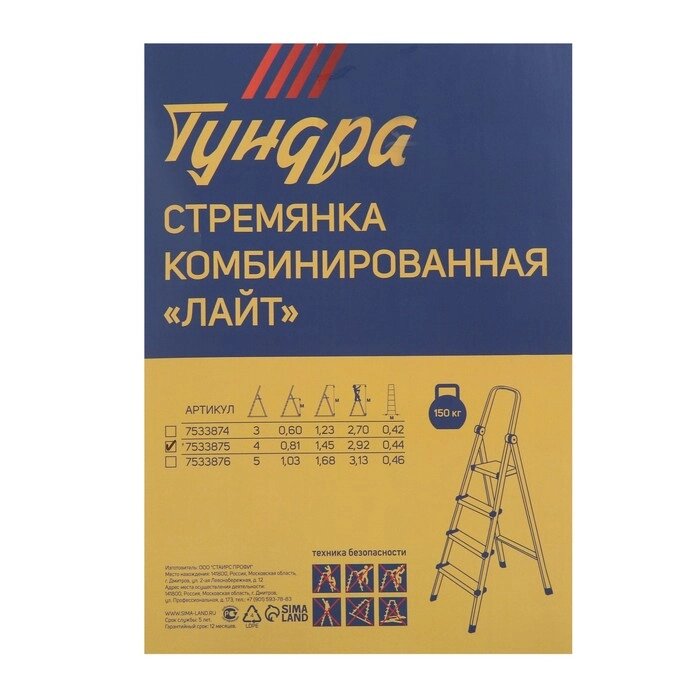 Стремянка TUNDRA "ЛАЙТ", комбинированная, 4 ступени, 815 мм