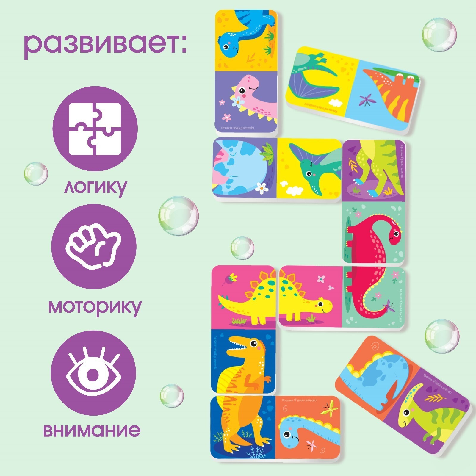 Домино EVA для игры в ванне «Динозаврики», 20 деталей