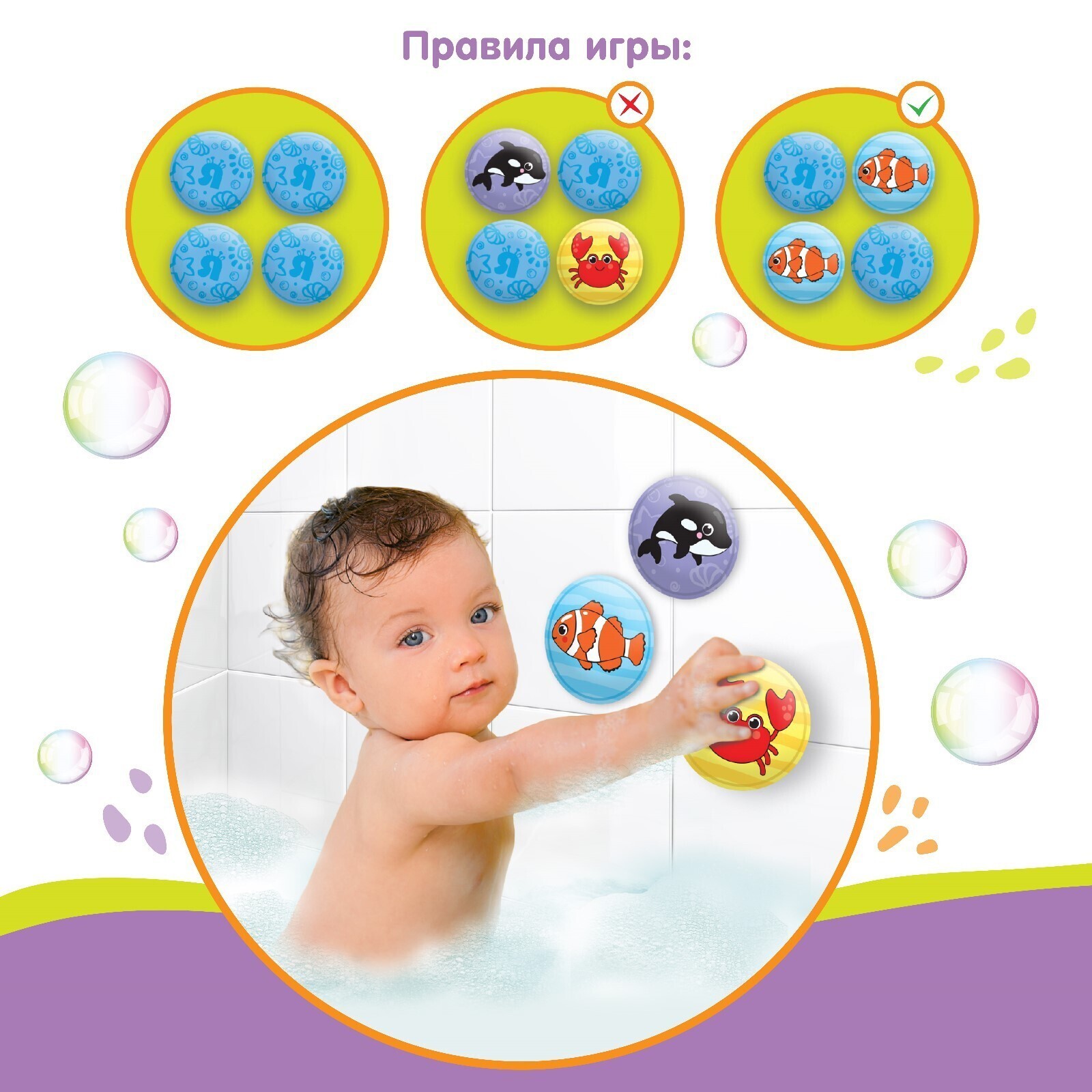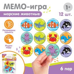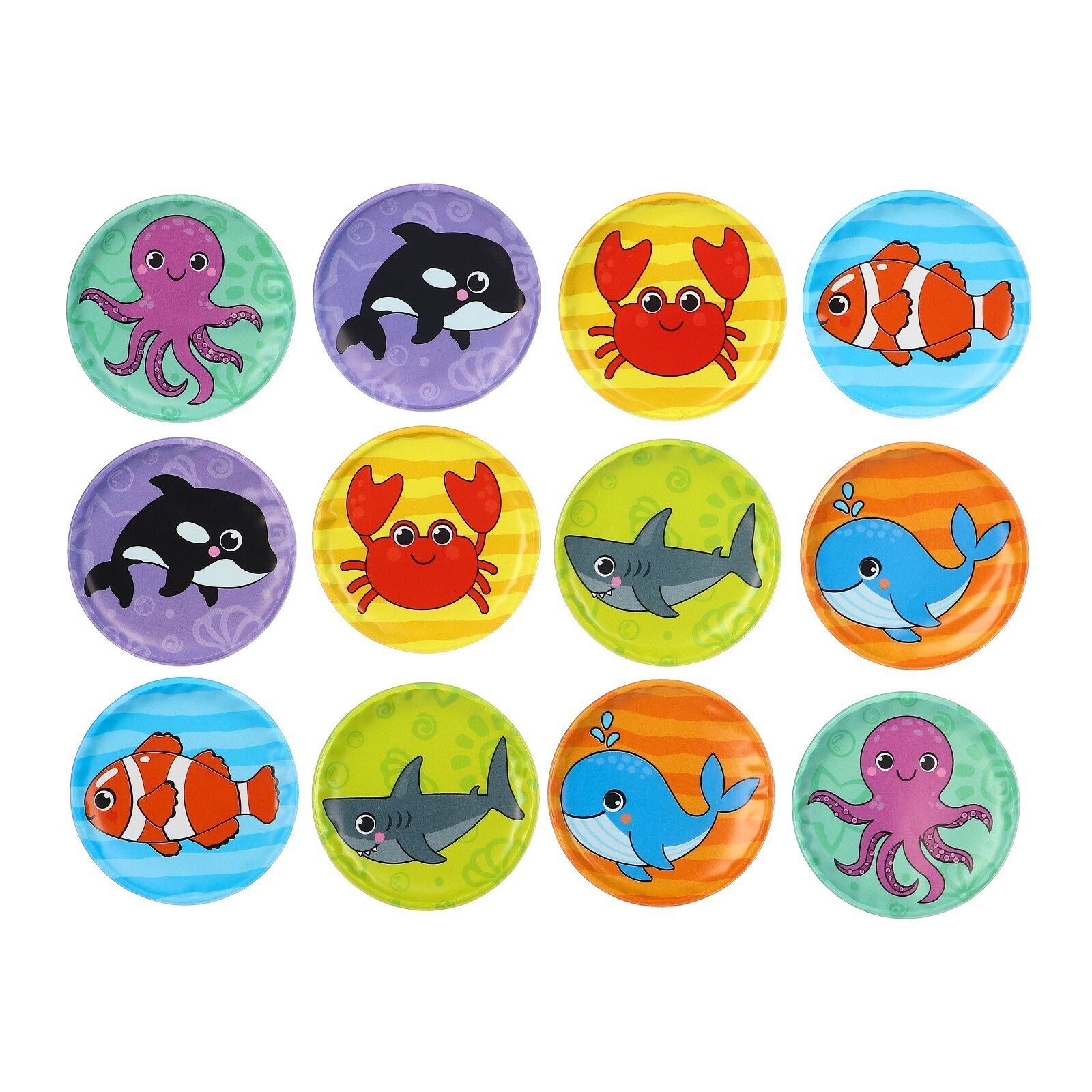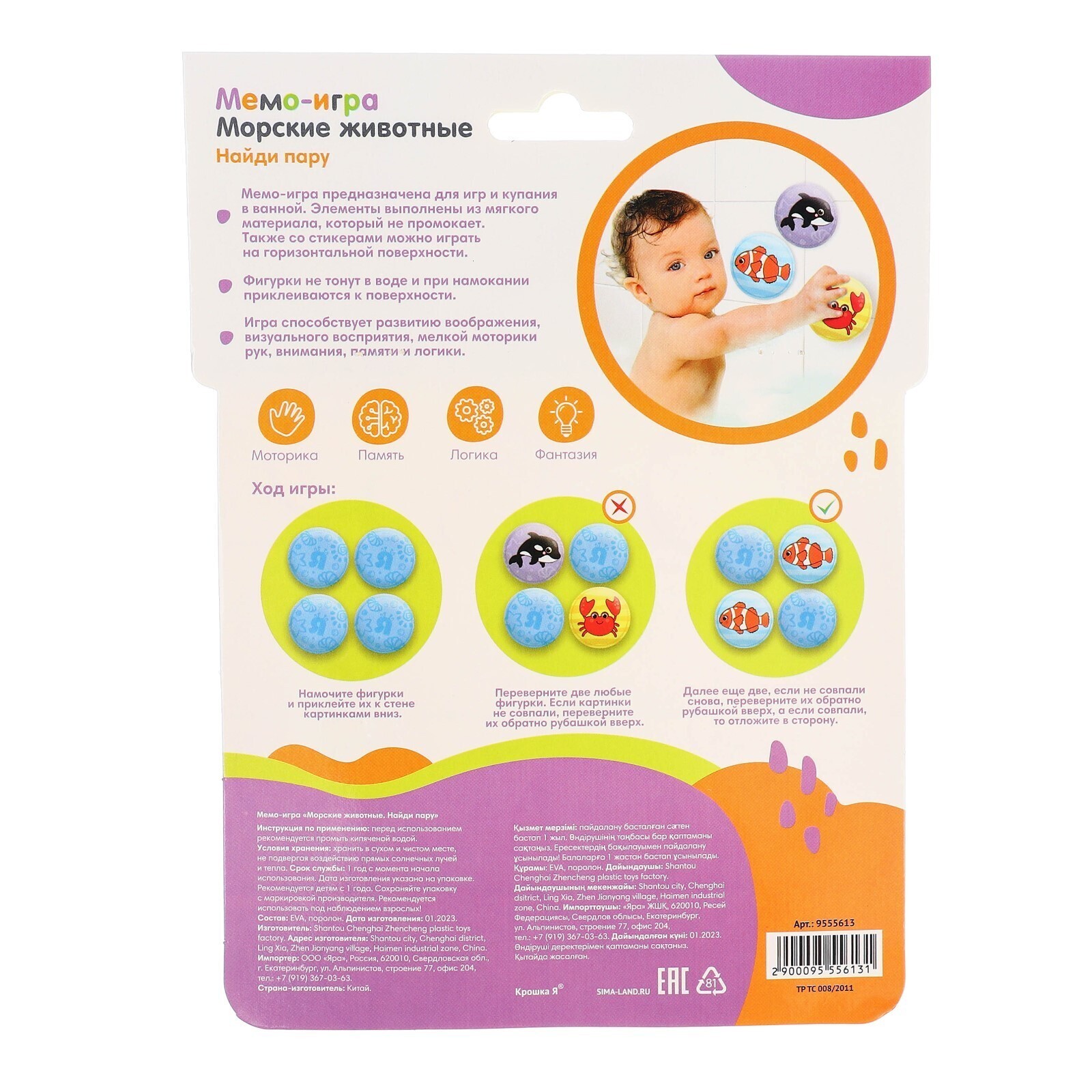 Мемо-игра развивающая для игры в ванной «Морские животные» найди пару, 6 пар, 12 эллементов, EVA