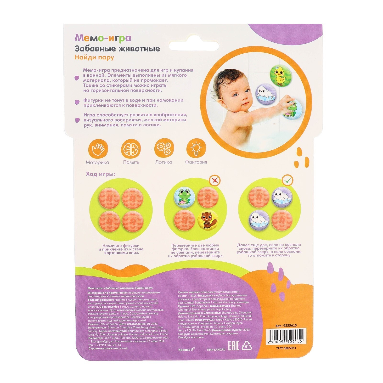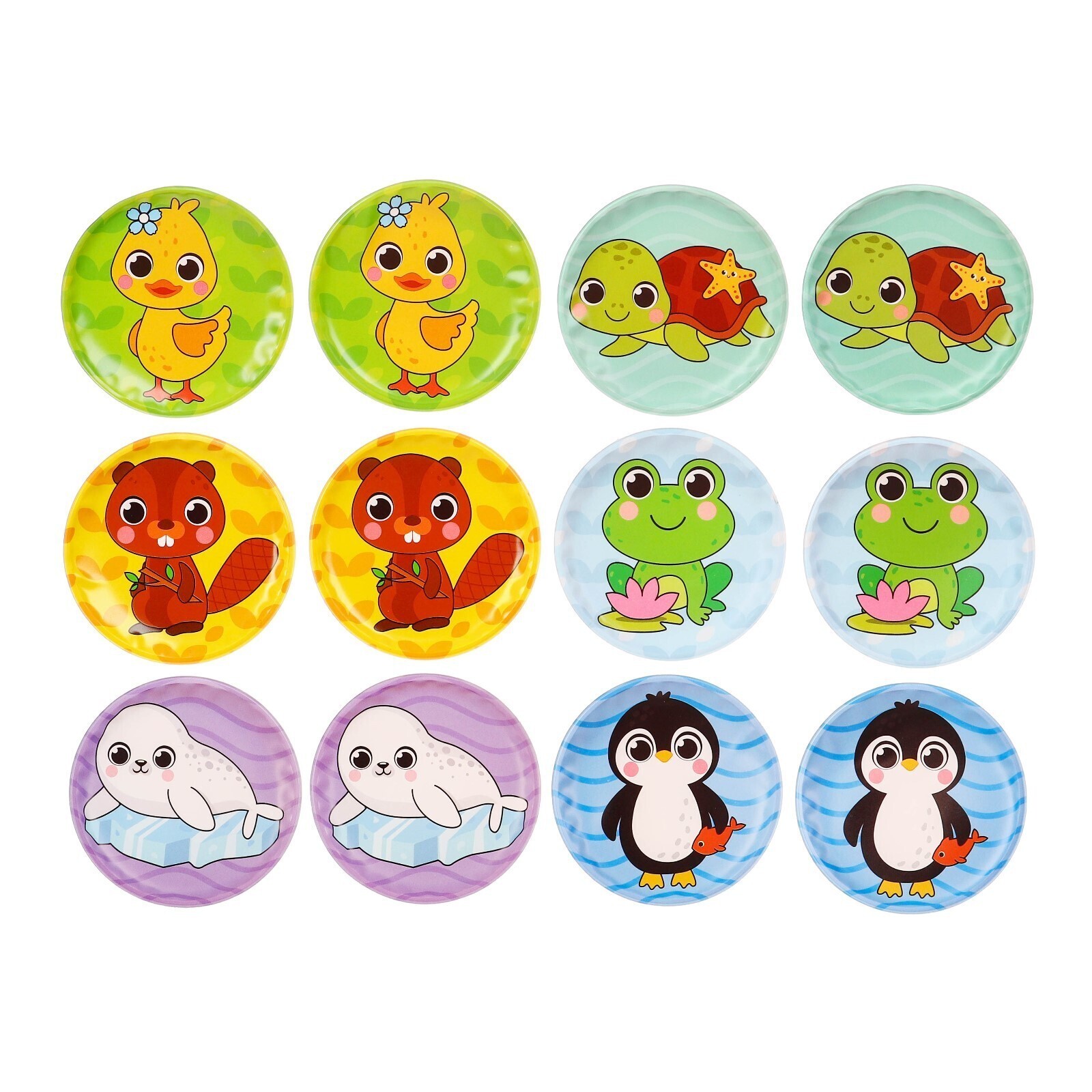 Мемо-игра развивающая для игры в ванной «Забавные животные» найди пару, 6 пар, 12 эллементов, EVA