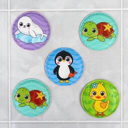 Забавными фигурками из мягкого материала можно играть не только в детской, но и в ванной. Они не тонут в воде и при намокании приклеиваются к поверхности.