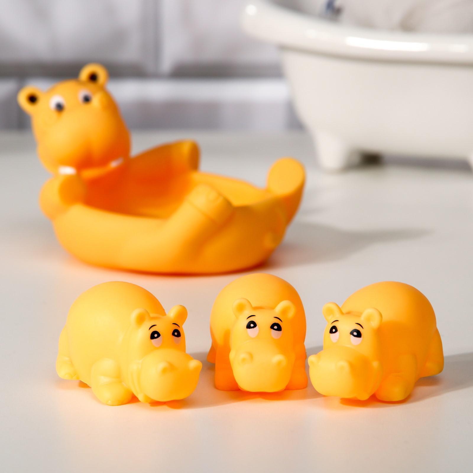 Набор игрушек для ванны «Бегемотики» мыльница, 3 игрушки, с пищалкой