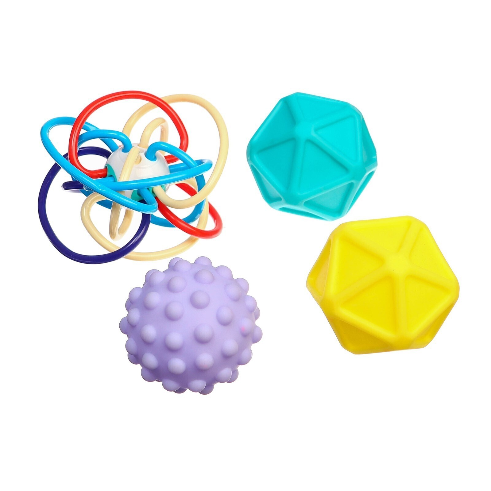 Набор игрушек для ванны «Тактильные мячики и погремушка», 4 шт