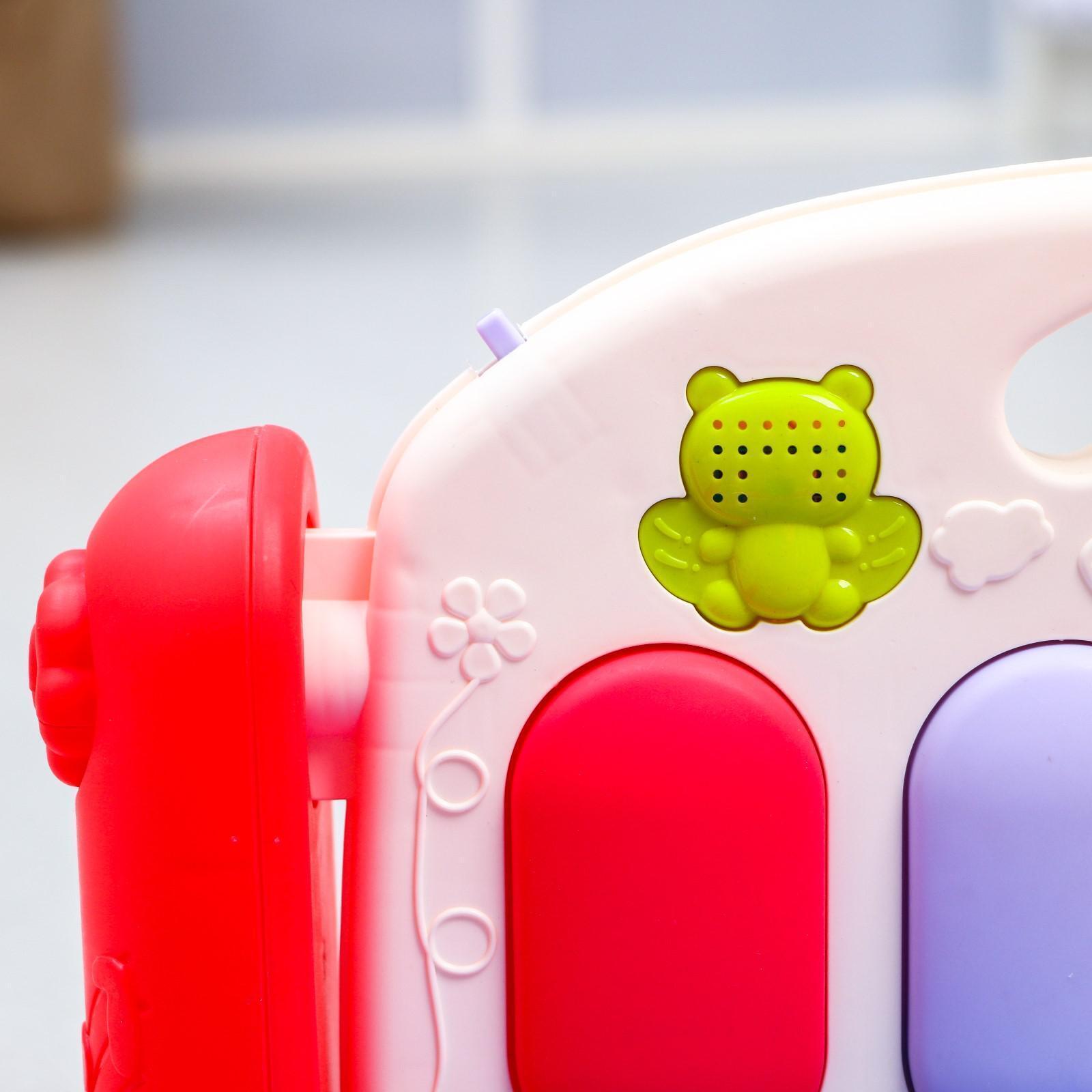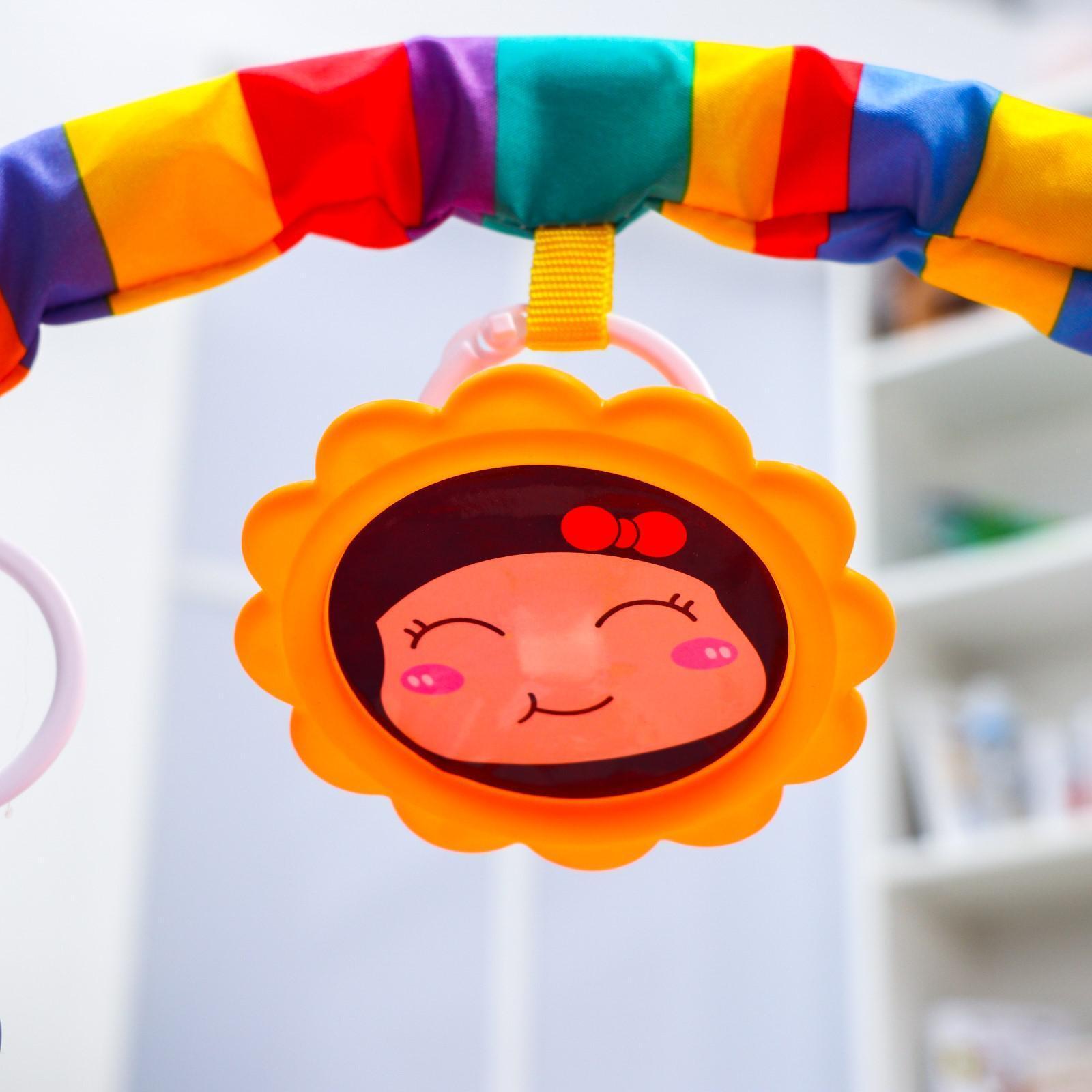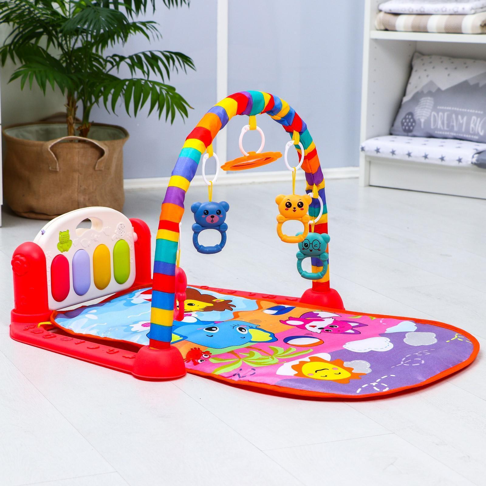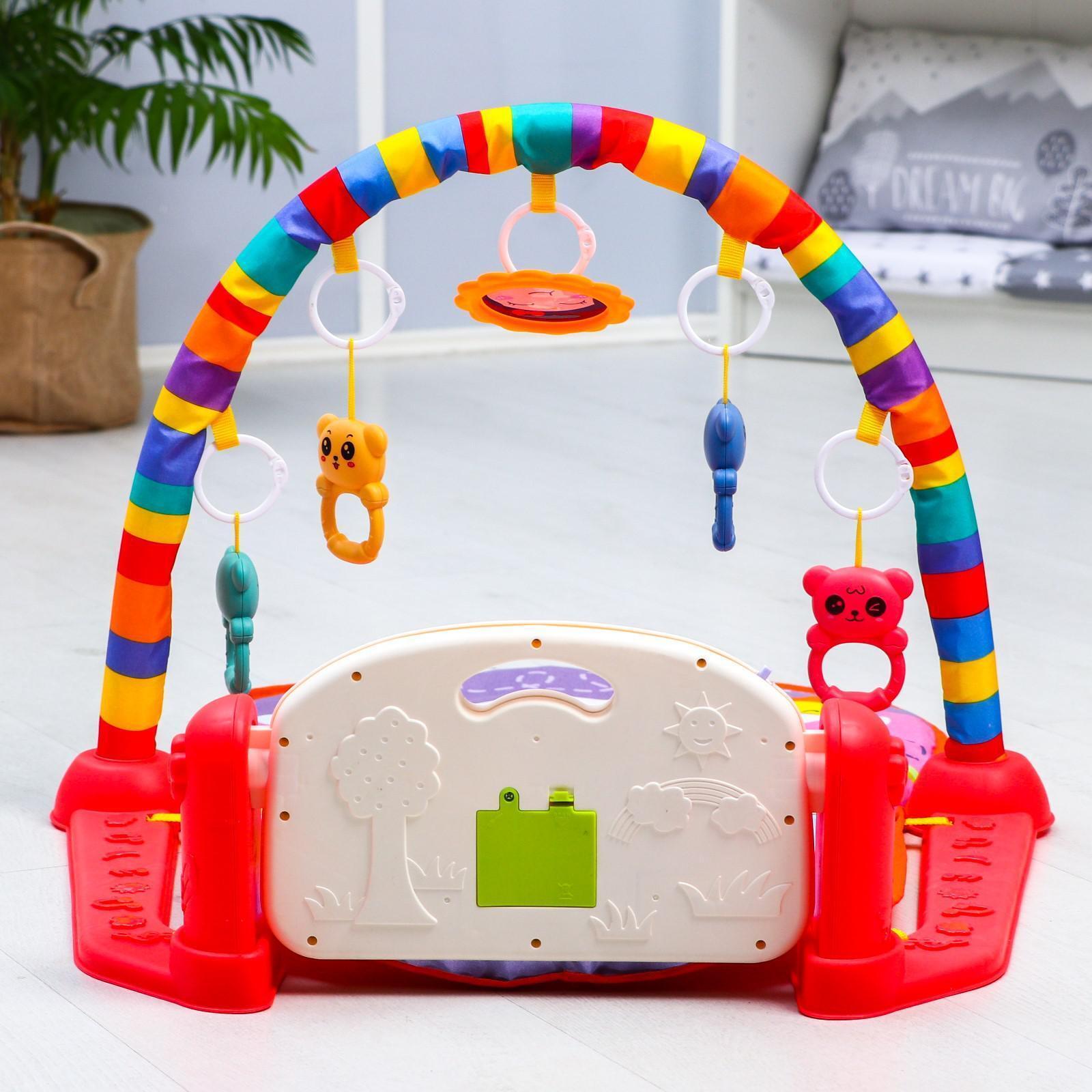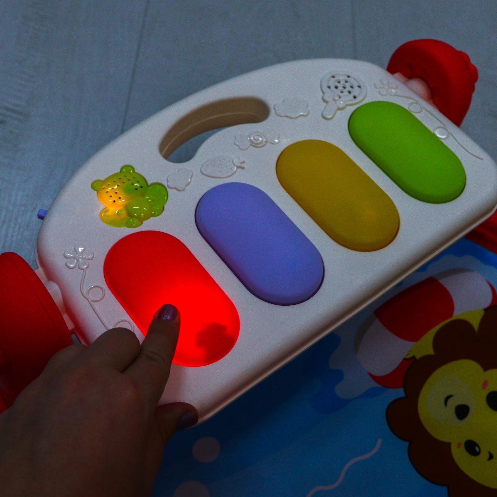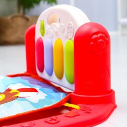 Сначала кроха, лёжа на спинке, будет просто с интересом разглядывать яркие игрушки на дуге, развивая зрительные навыки и способность фокусировать взгляд на объекте. Со временем он начнёт тянуться к этим привлекательным игрушкам ручками и ножками, совершенствуя хватательный рефлекс и двигательные функции. Постепенно малыш сможет наступать на клавиши пианино ножками и включать музыку и световые эффекты.