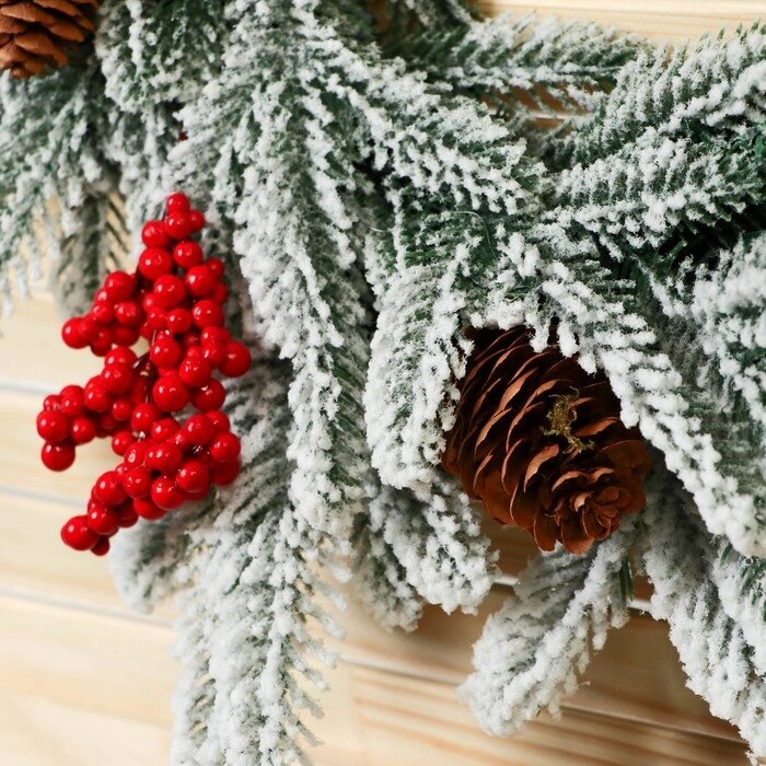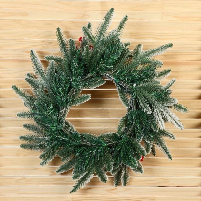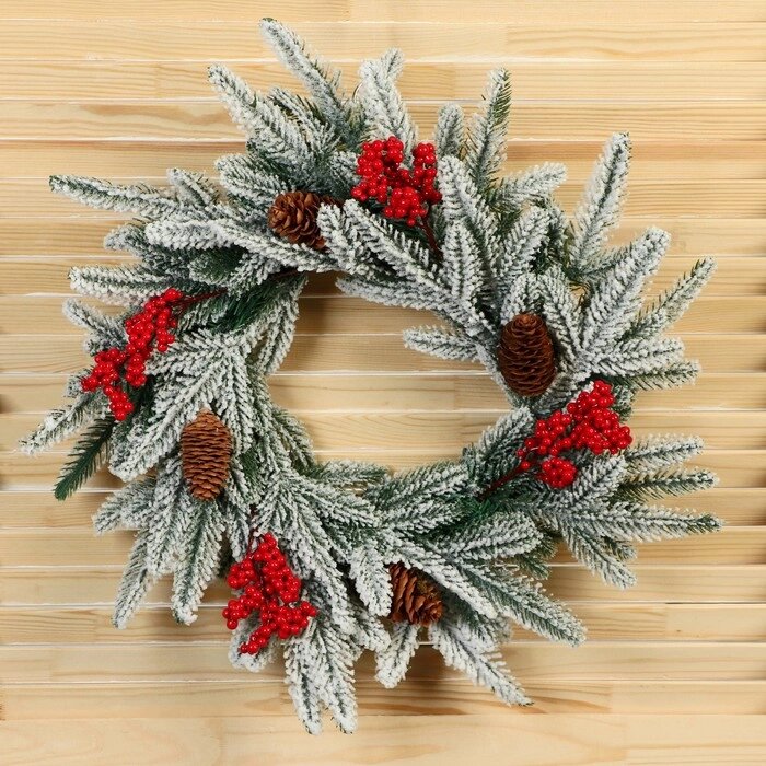 Венок новогодний d- 36 см "Уютная сказка" веточки в снегу ягоды шишки