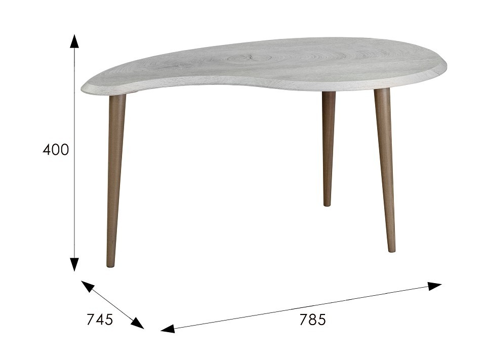 Цвет столешницы: дуб дымчатый, Материал столешницы: МДФ, Материал покрытия столешницы: пленка, Материал корпуса: массив бука, Тип поверхности корпуса: полуматовый, Тип поверхности столешницы: матовый, Форма столешницы: сложная, Художественное описание товара: При всей своей прагматичности и простоте, этот столик действительно может вызвать приятное чувство новизны. Каждый увидит в этой оригинальной форме что-то свое. Кто-то запятую, перо, зерно, кто-то кляксу - все зависит от фантазии. Помимо оригинальной формы этот столик делают актуальным фацет по краю столешницы и современные цвета отделки. А использовать его можно и как журнальный и как кофейный и даже как прикроватную тумбочку., Цвет корпуса: шимо, Основной цвет мебели: древесина коричневая светлая дуб