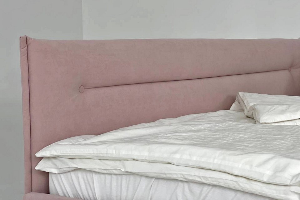 Длина спального места, мм: 2000, Ширина спального места, мм: 1600, Цвет обивки: нежно-розовый, Материал обивки: велюр, Наполнитель: ППУ, Материал корпуса: ДСП, Дополнительные параметры: Опоры основания - 245 мм. Съемный чехол у бортов и изножья. Регулируемые опоры.