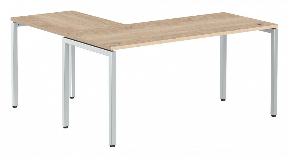 Цвет столешницы: дуб сонома, Цвет кромки: дуб сонома, Материал столешницы: ЛДСП Е1, Материал кромки: ПВХ, Материал корпуса: металл, Тип поверхности корпуса: матовый, Тип поверхности столешницы: матовый, Форма столешницы: сложная, Угол: универсальный, Дополнительные параметры: Опоры столов: металлокаркас сечением 40x40 мм, толщина металла 2 мм, траверсное соединение. Регулируемые опоры столов:, Цвет корпуса: серый, Основной цвет мебели: древесина коричневая светлая дуб