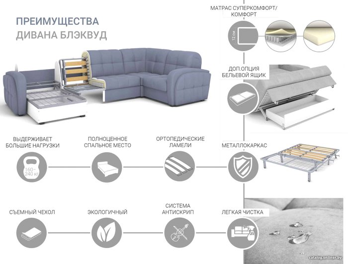 • Настил пенополиуретан (поролон), блок независимых пружин