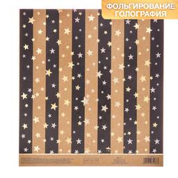 Бумага для скрапбукинга крафтовая с голографическим фольгированием «Волшебство», 20 х 21,5 см, 300 г/м²
