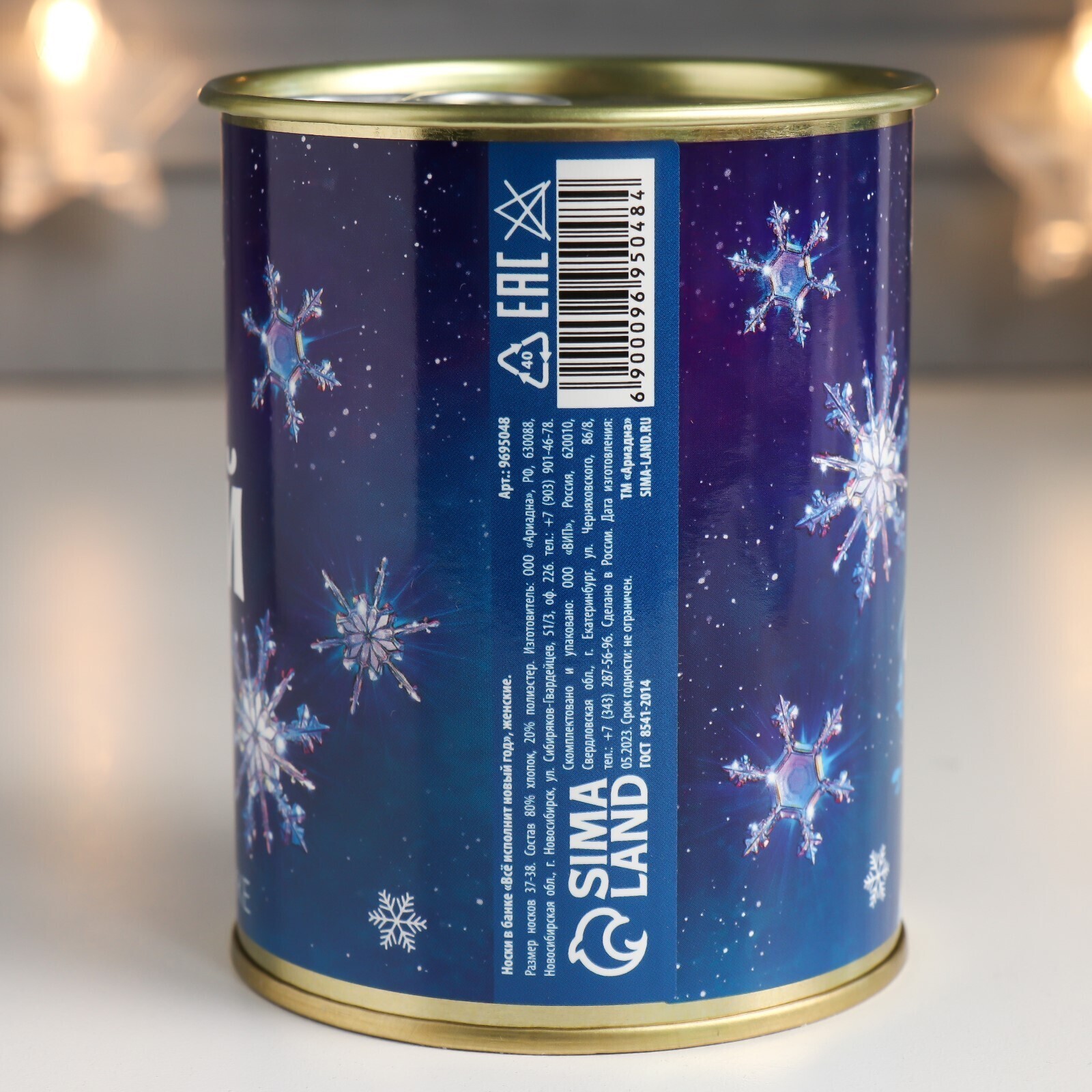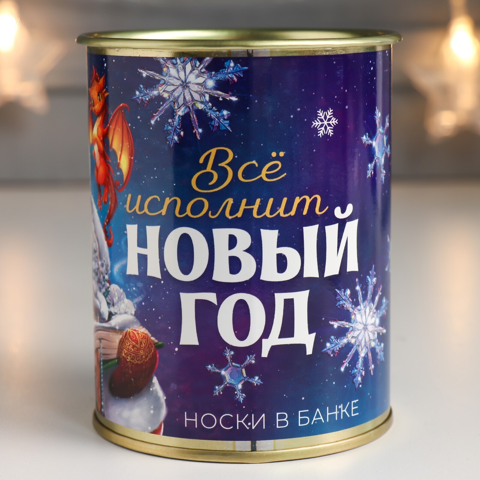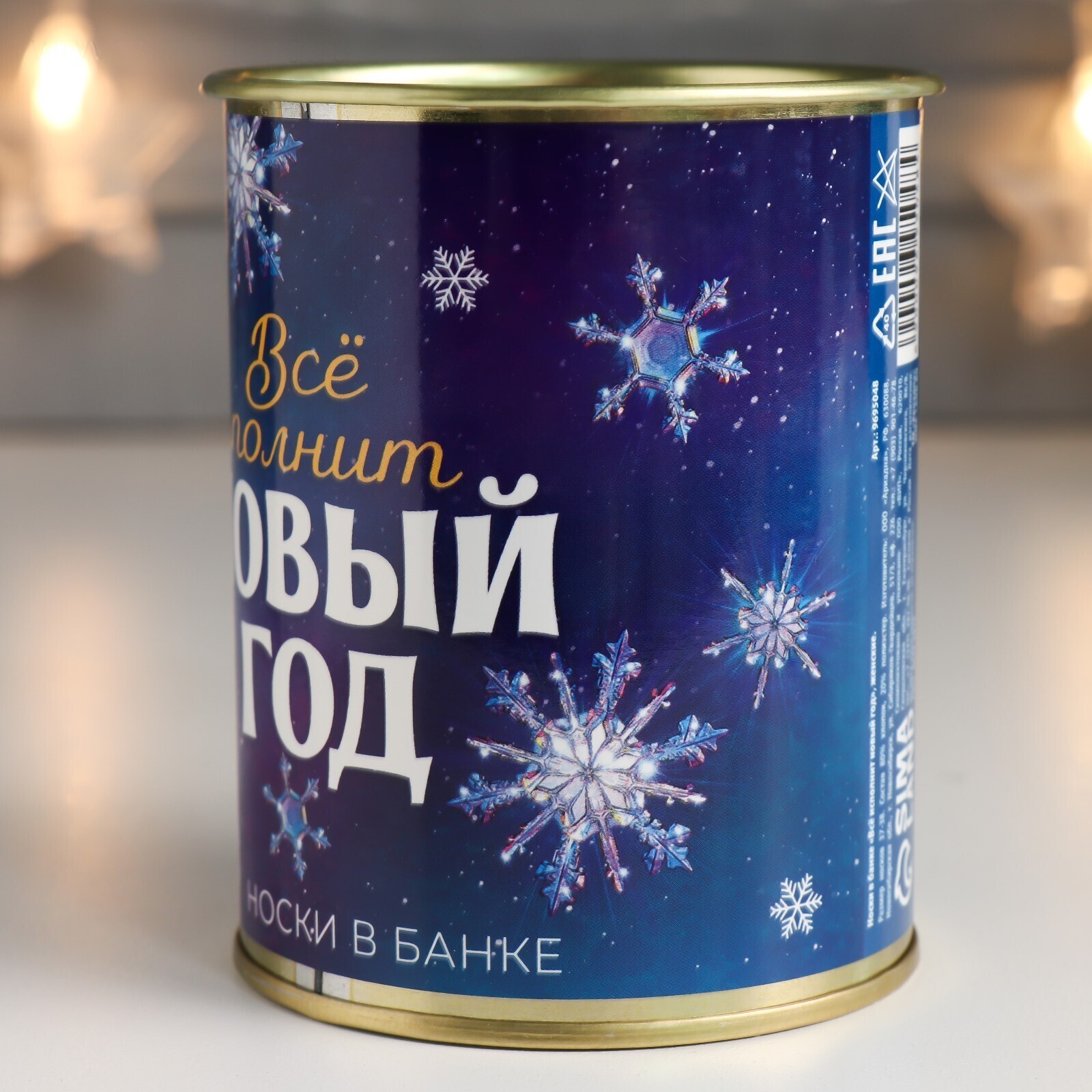 Носки в банке "Всё исполнит Новый год" (женские, цвет белый)