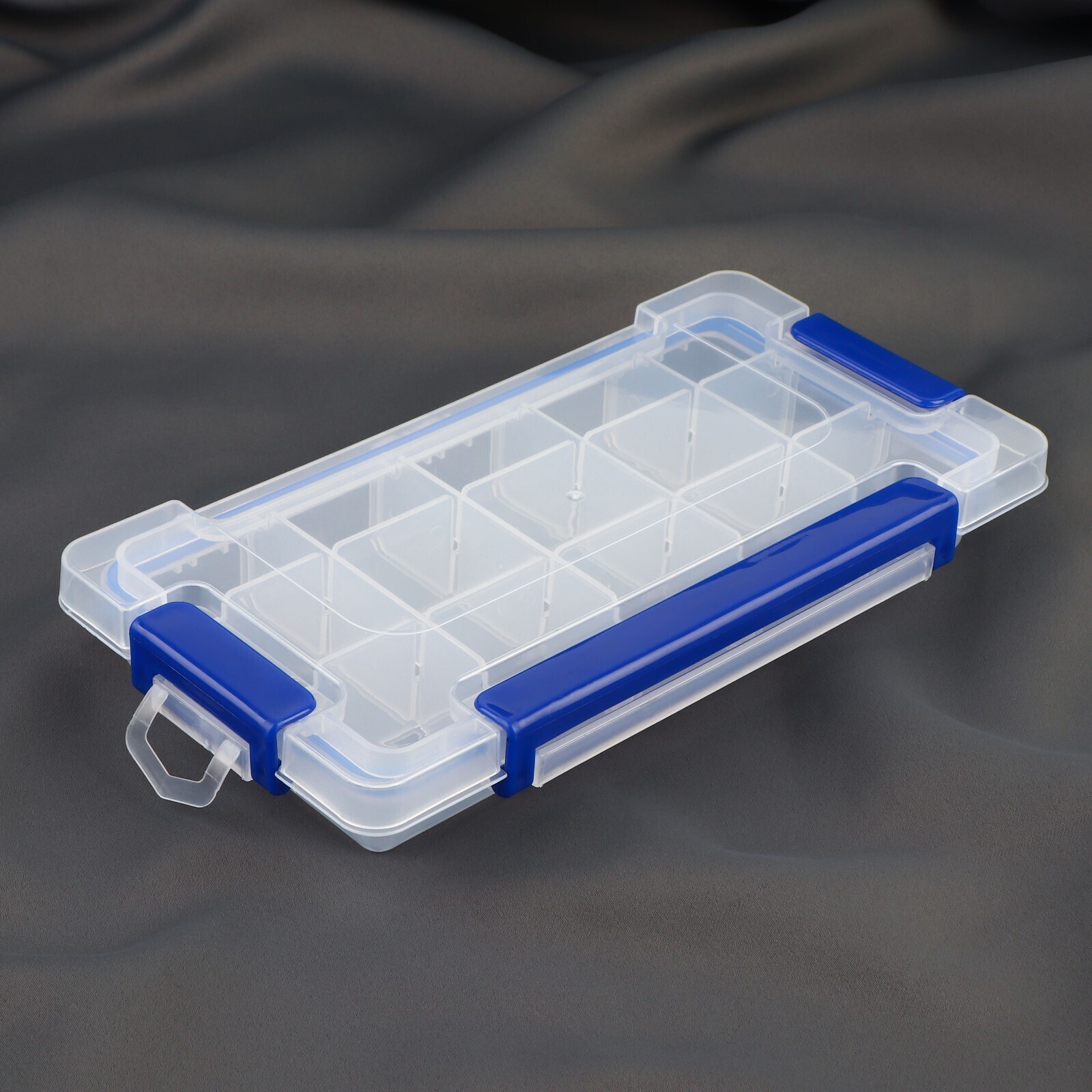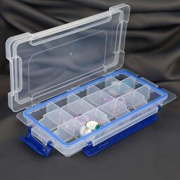 Контейнер для рук-я со съём ячейками 15отд 23*12*3,5см 3застёжки с подвесом прозрач/синий АУ