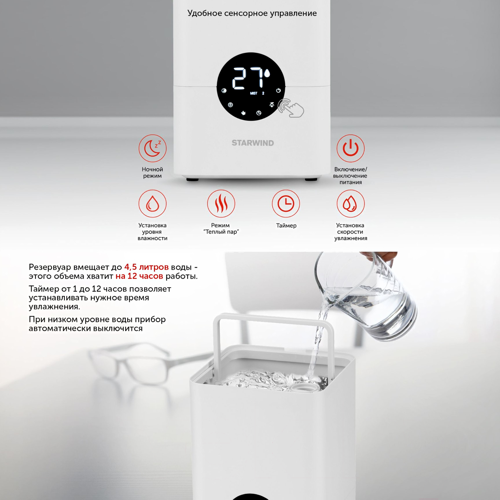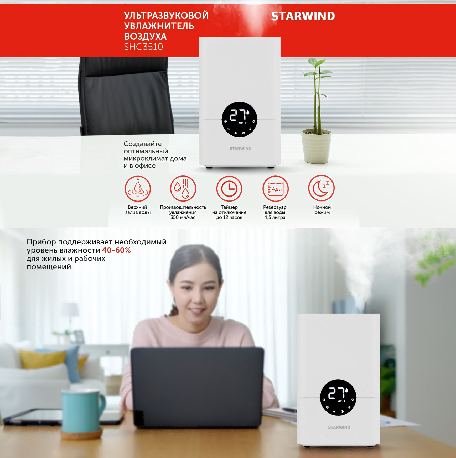 Ультразвуковой увлажнитель воздуха StarWind SHC3510 (белый/черный)