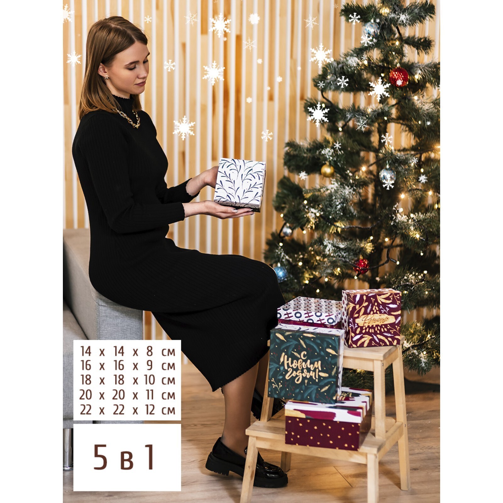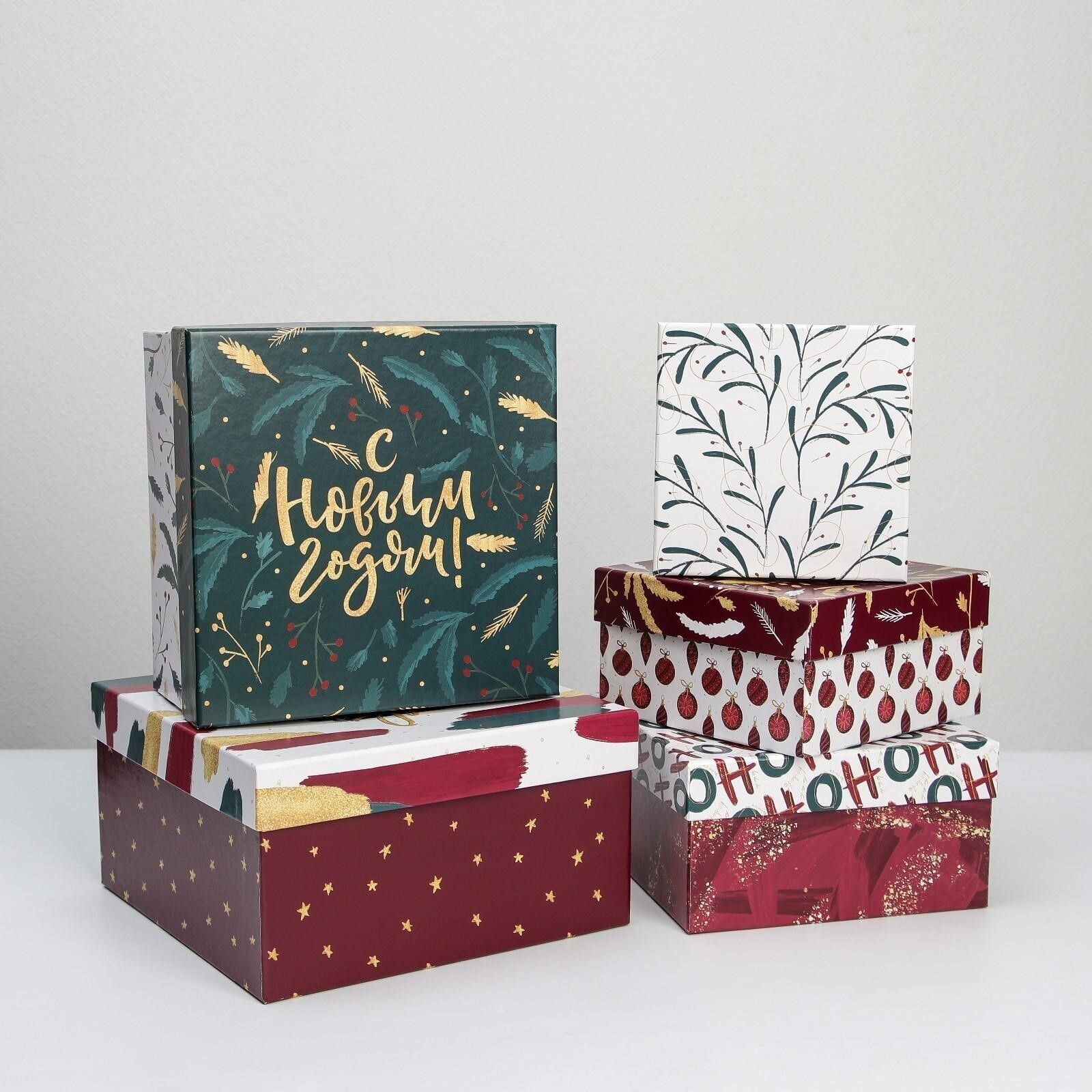 Набор подарочных коробок 5 в 1 «Новый год», 14 × 14 × 8 - 22 × 22 × 12 см