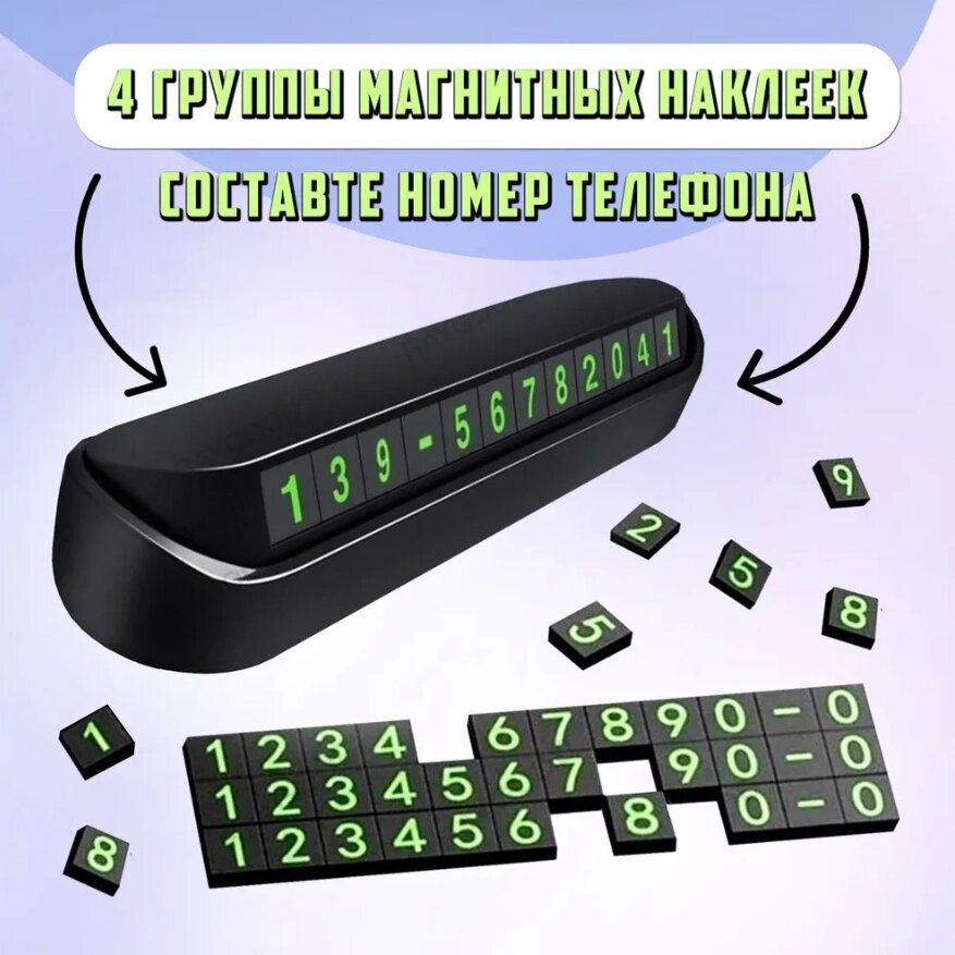 Автовизитка с магнитными цифрами / Автомобильная табличка для парковки с номером телефона
