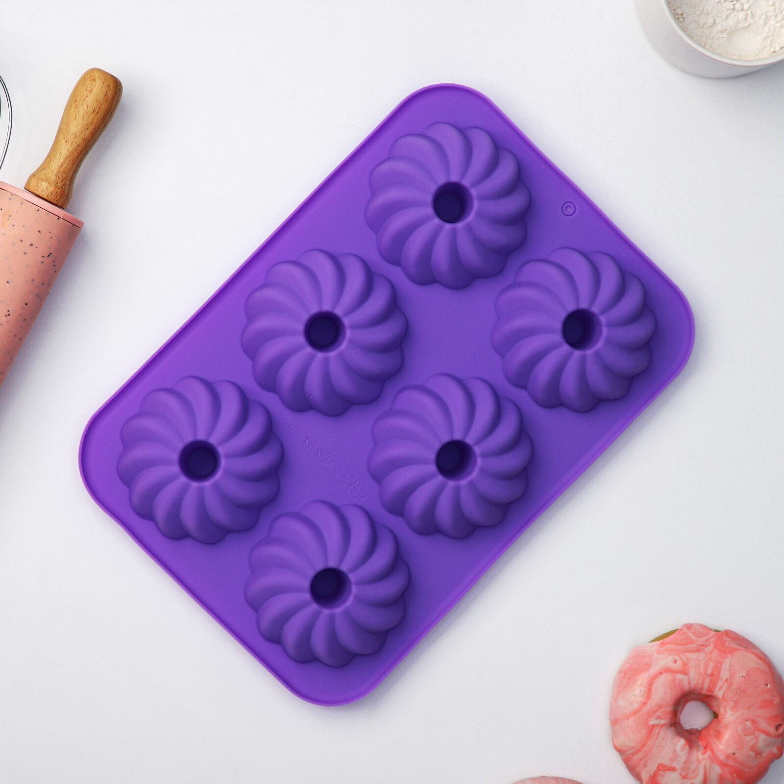 Форма для выпечки 6 ячеек "Кекс" 26х18х3,5 см (7,5х7,5х2,5 см), цвет сиреневый