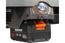 Снегоуборщик оснащен бензиновым двигателем DAEWOO серии 220 snow. Он оснащен электрозапуском, работающим от аккумуляторной литиево-ионной батареи напряжением 21 В. Благодаря этому для начала работы не нужно прилагать никаких усилий – достаточно просто нажать на кнопку. Аккумуляторная батарея высокой емкости эффективно сохраняет заряд и легко устанавливается в специальный слот под панель оператора.