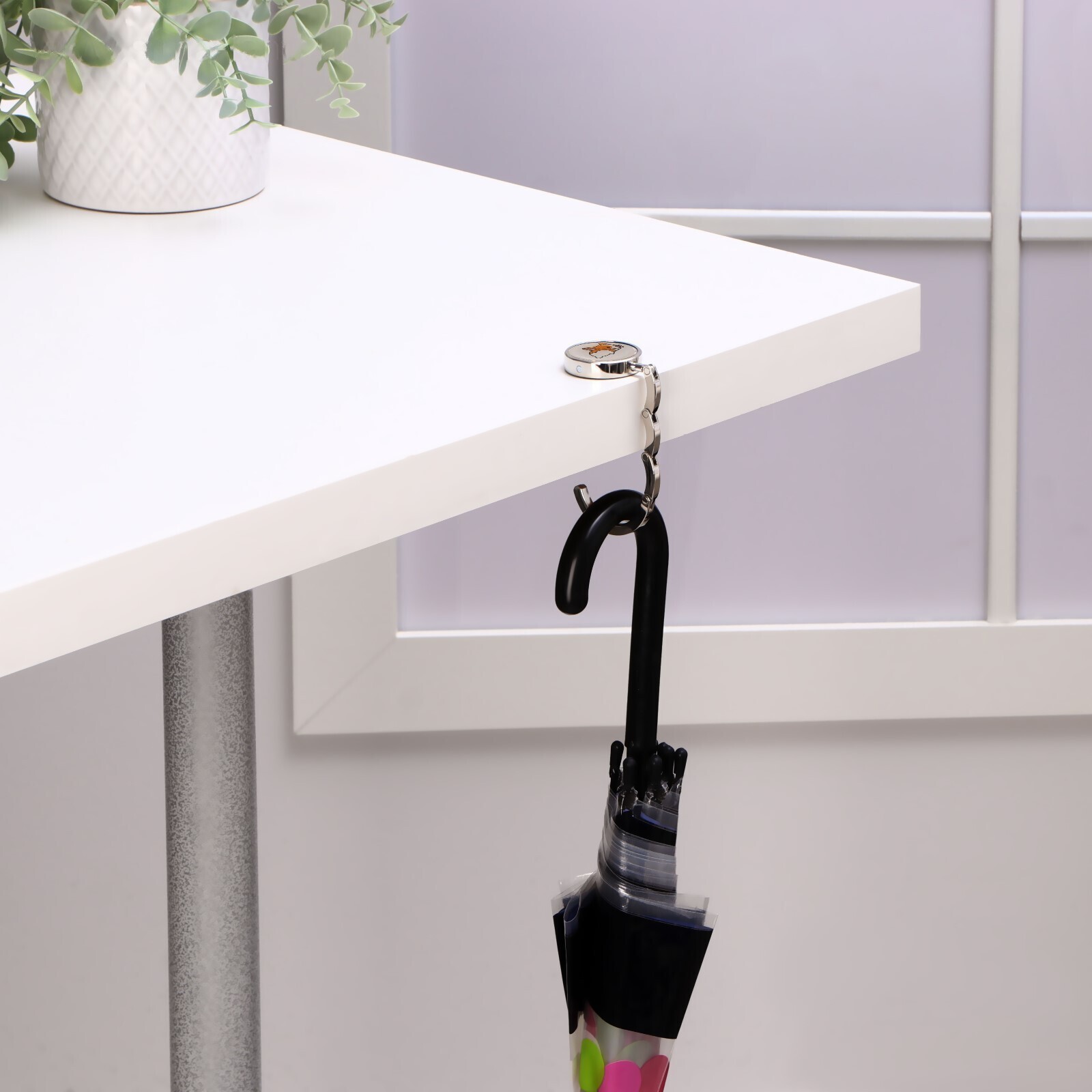 Крючок будет практичным аксессуаром. Держатель для сумки и зонта поможет Вам, если не хотите ставить сумку на пол или нужно повесить зонт, а крючка нигде нет. Складной держатель будет всегда под рукой, он компактный и влезет в любую сумку.