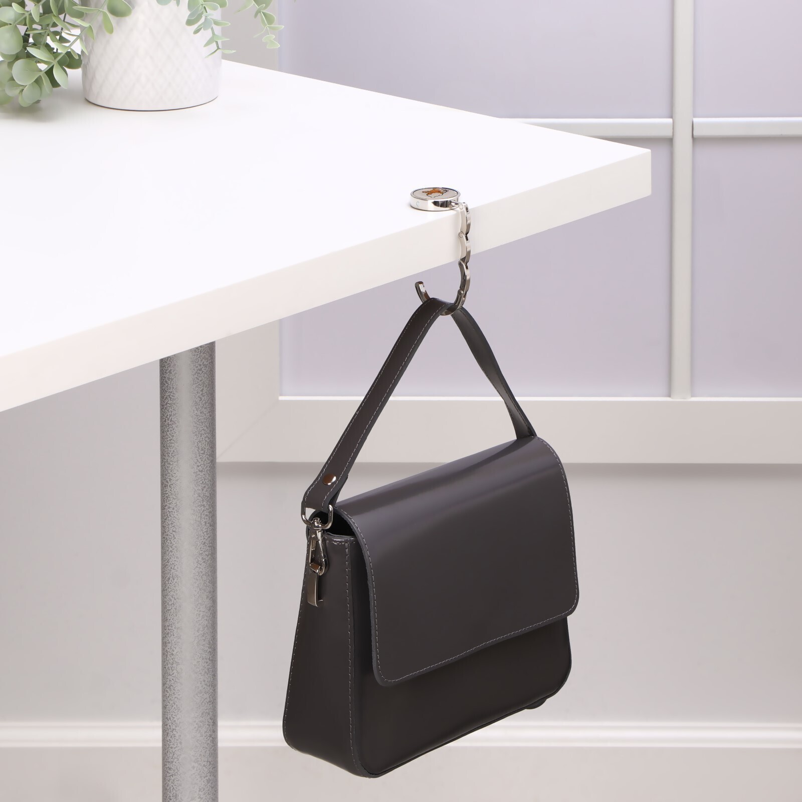 Крючок для сумки на стол не портит поверхность мебели и крепко держится.Дизайн крючков универсальный - он понравится и любительницам элегантности, и поклонницам всего пестрого и яркого.Такой аксессуар подойдёт в офис, на прогулку, в кафе.