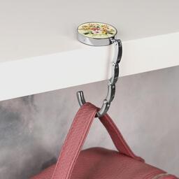 Крючок для сумки на стол не портит поверхность мебели и крепко держится.Дизайн крючков универсальный - он понравится и любительницам элегантности, и поклонницам всего пестрого и яркого.Такой аксессуар подойдёт в офис, на прогулку, в кафе.