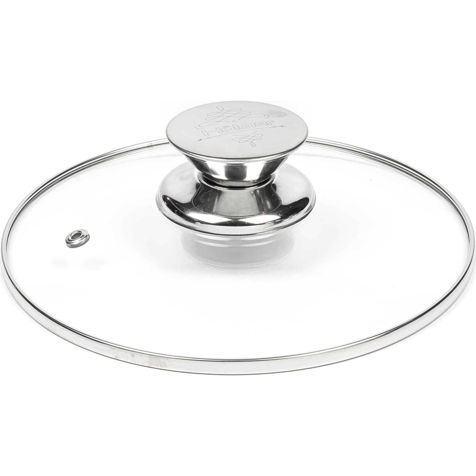 Кришка з удароміцного термостійкого скла, з ободом із нержавіючої сталі й отвором для виходу пари. Завдяки тому, що кришка прозора легко спостерігати за приготуванням їжі, не знімаючи її з каструлі.