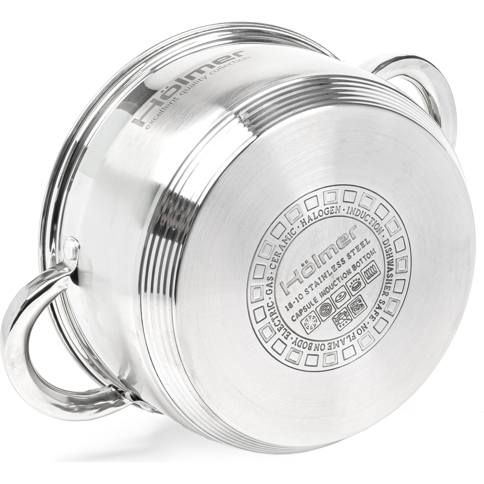 Набір посуду Hölmer CS-1651-SS виготовлено із високоякісної нержавіючої сталі. Сталь 18/10 — винятково жароміцний, ударостійкий, зносостійкий, не схильний до корозії матеріал.