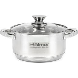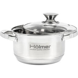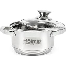 Набір посуду Hölmer CS-1651-SS складається з 6-х предметів, а саме каструль об'ємом 2 л, 2,7 л та 3,8 л. Також три скляні кришки з отвором для випуску пари полегшує спостереження за процесом приготування. Має елегантний дизайн який добре підійде до будь-якої кухні. Сумісний з усіма типами варильних поверхонь, включаючи індукційну (газові, електричні, керамічні, індукційні).