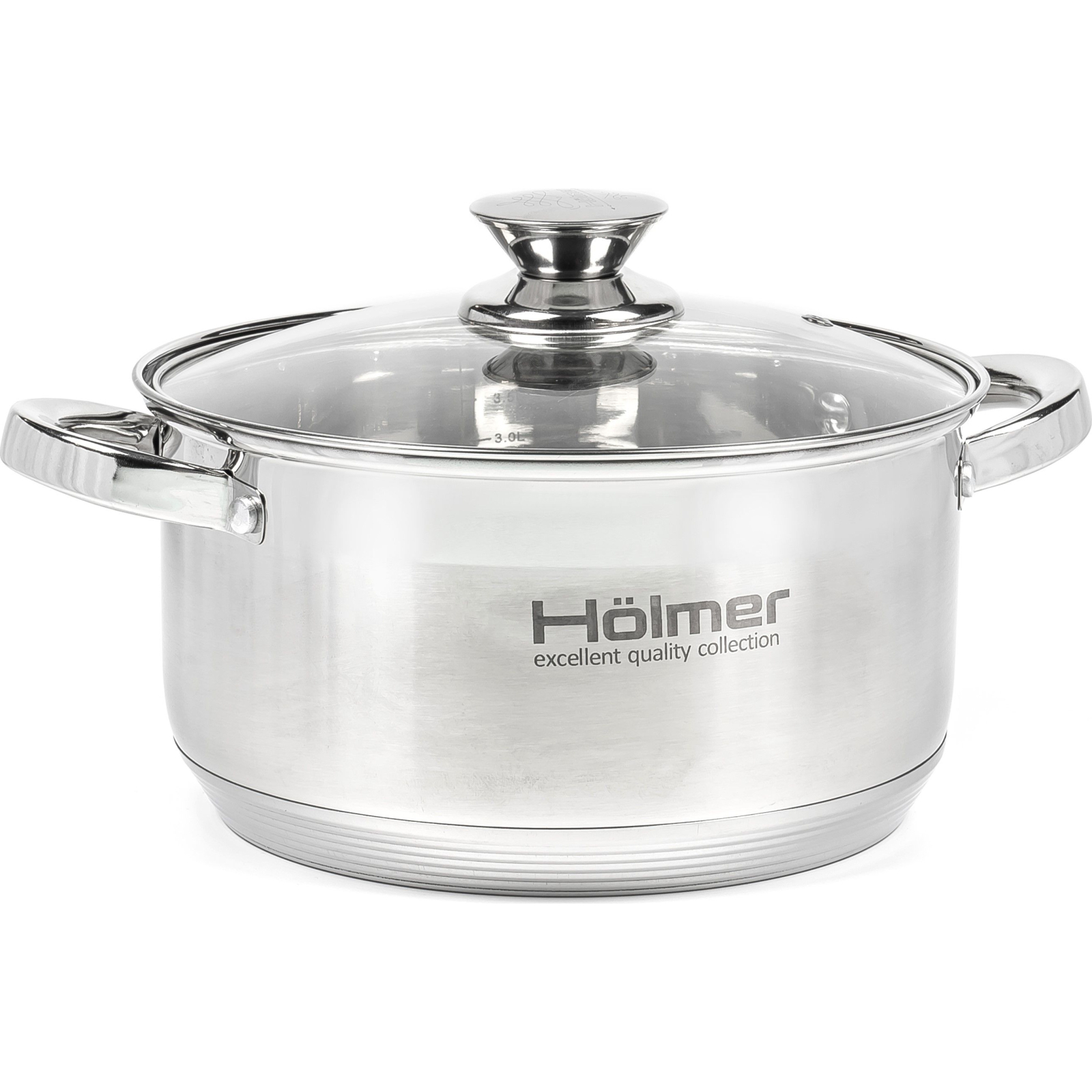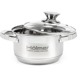 Набір посуду Hölmer CS-1653-SS складається з 6-х предметів, а саме каструль об'ємом 2,7 л, 3,8 л та 5 л. Також три скляні кришки з отвором для випуску пари полегшує спостереження за процесом приготування. Має елегантний дизайн який добре підійде до будь-якої кухні. Сумісний з усіма типами варильних поверхонь, включаючи індукційну (газові, електричні, керамічні, індукційні).
