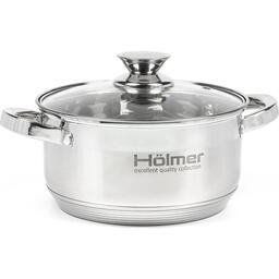 Набір посуду Hölmer CS-1652-SS складається з 6-х предметів, а саме каструль об'ємом 1,5 л, 2,7 л та 5 л. Також три скляні кришки з отвором для випуску пари полегшує спостереження за процесом приготування. Має елегантний дизайн який добре підійде до будь-якої кухні. Сумісний з усіма типами варильних поверхонь, включаючи індукційну (газові, електричні, керамічні, індукційні).