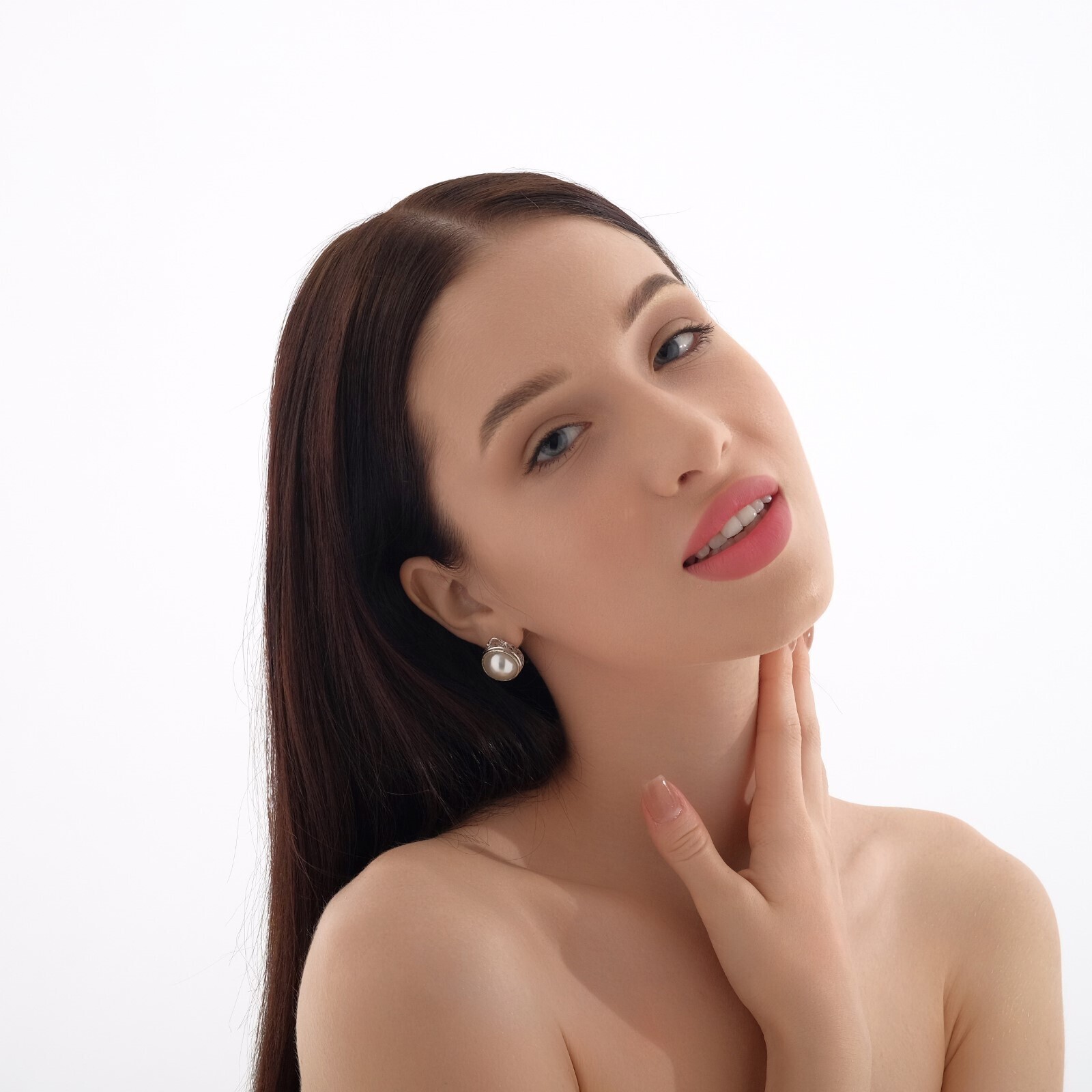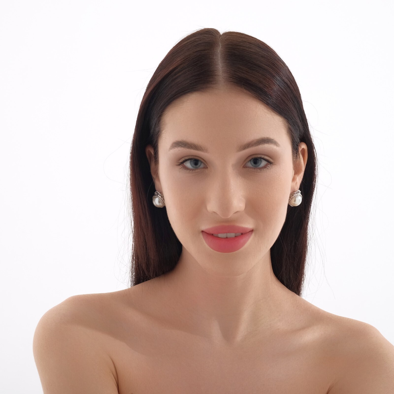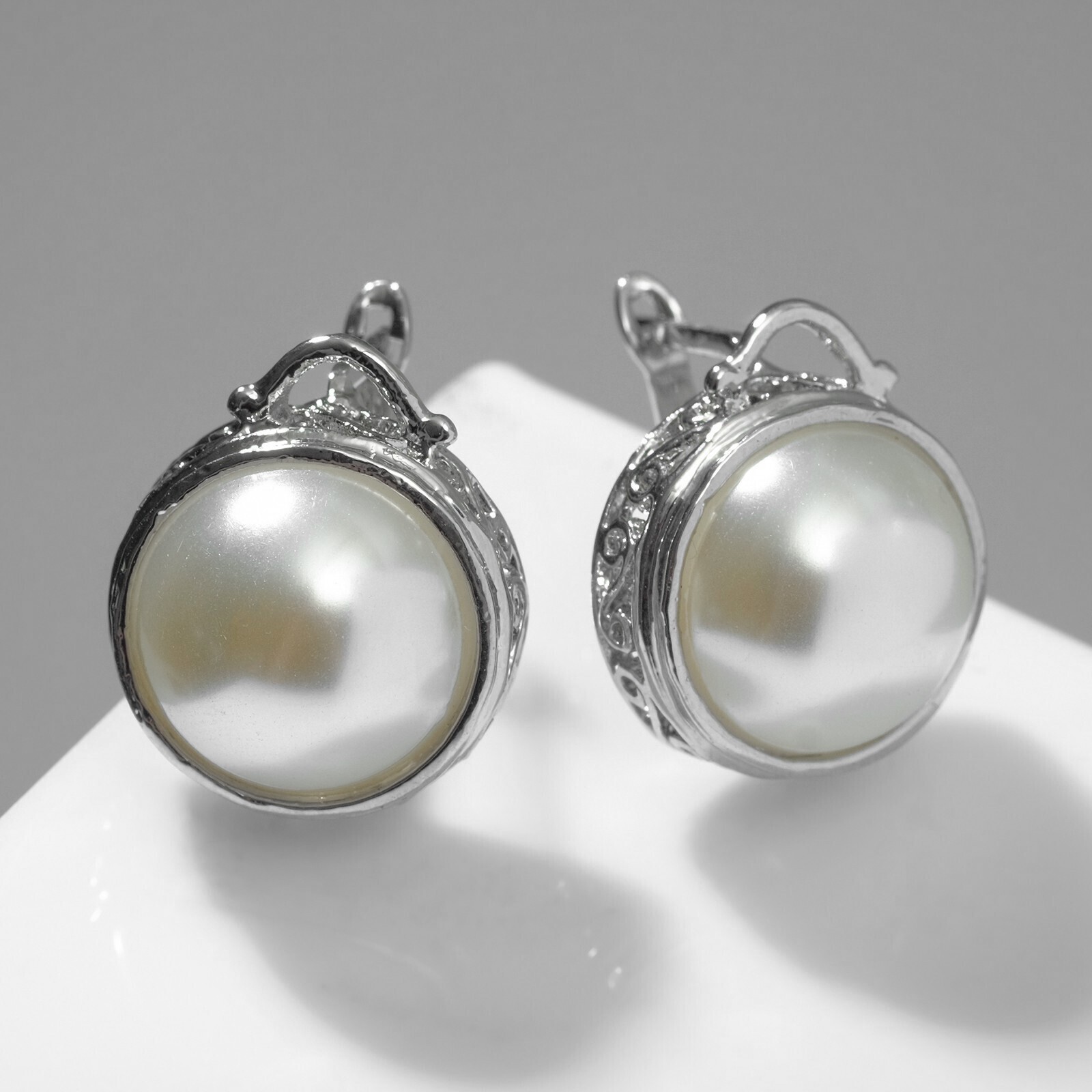 Серьги с жемчугом "Эдель" круг классика, цвет белый в серебре