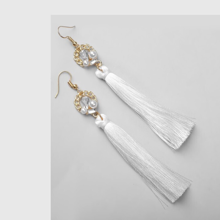 - Вид серьги Висячие со стразами, Из текстиля, Кисти