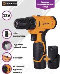 Аккумуляторная дрель-шуруповерт Вихрь ДА-12Л-2КА